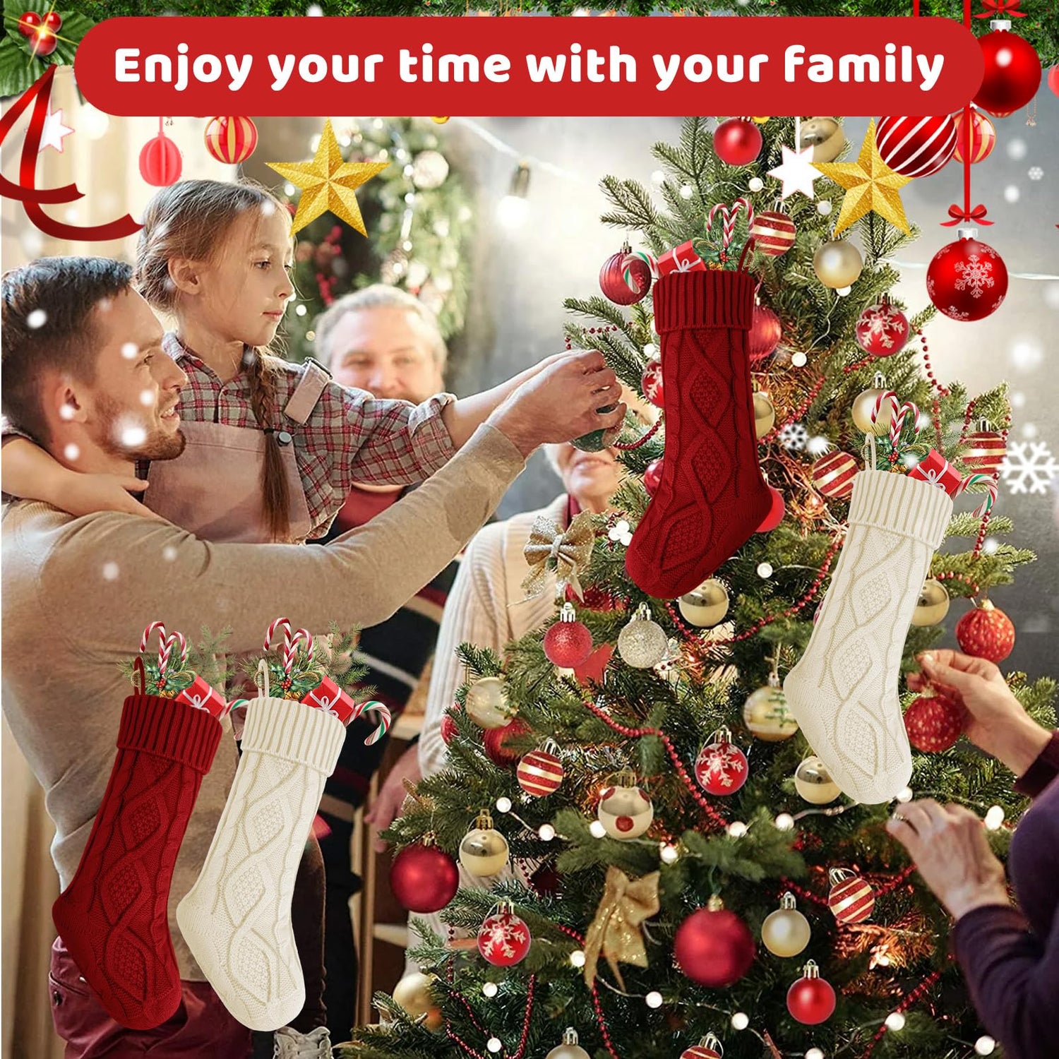 - ✅【❄❄Super Pack】2 great value knitted Christmas stocking kit in total, including 1 burgundy and 1 personalized ivory knitted Christmas stockings, plenty enough for your holiday or everyday life, making these well-made of socks & high-quality classic knit pattern to create a warm Christmas for you.