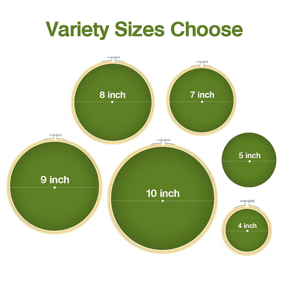 Caydo 6 Pieces Embroidery Hoop Set Circle Cross Stitch Hoop Ring 4 inch to 10 inch for Embroidery and Cross Stitch