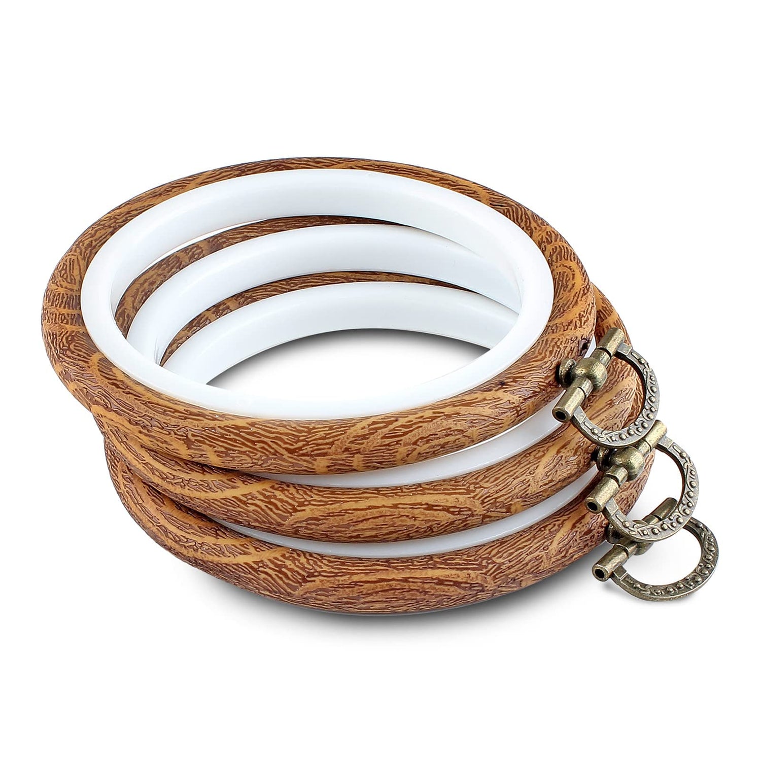 Piutouyar 3 Pieces 4 Inch Embroidery Hoop Set Imitated Wood Display Frame Embroidery Hoops Circle Cross Stitch Hoop Ring for Art Craft Sewing and Hanging Ornaments Decor