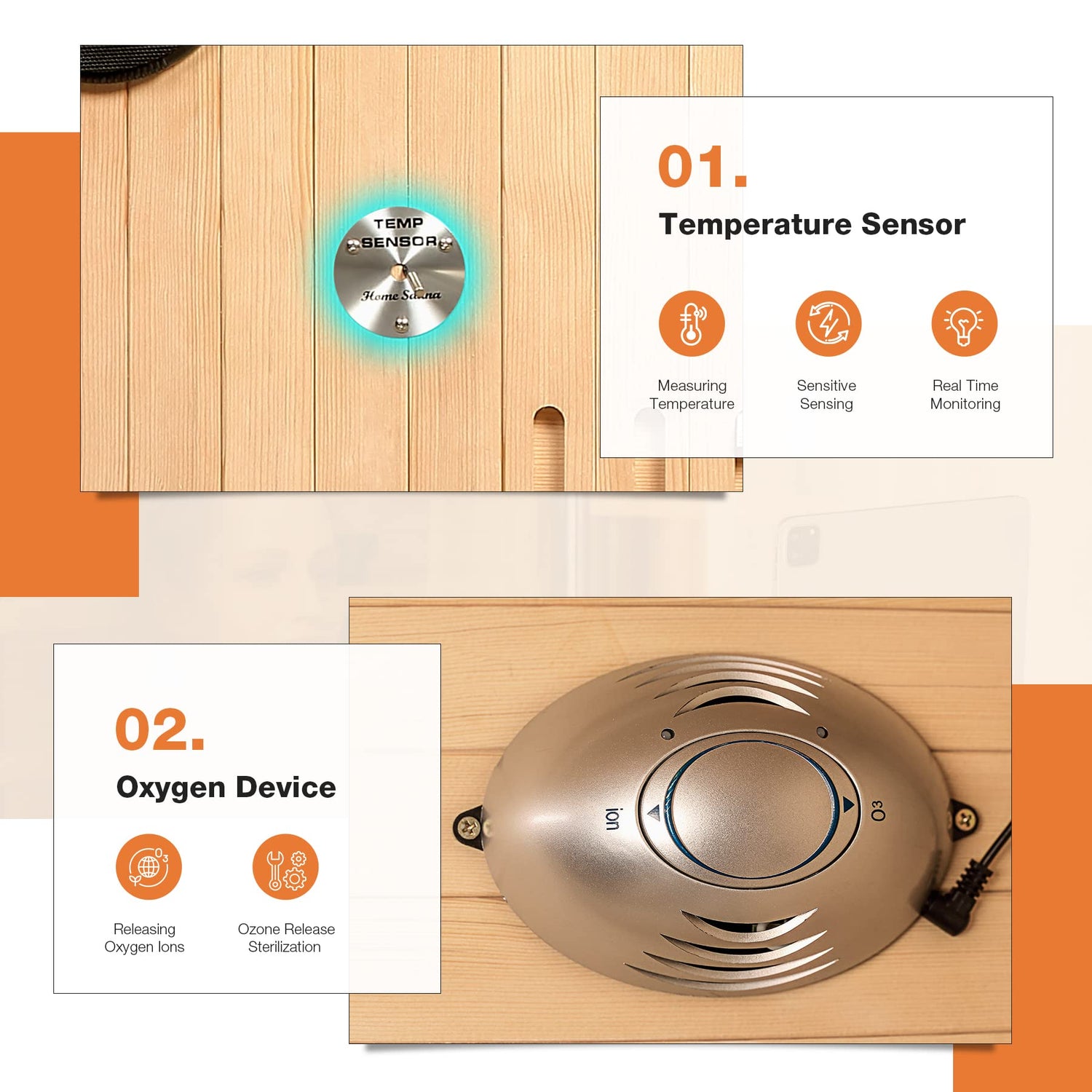 - Breaking the Boring Sauna Process: I guess you don't like sitting in a sauna for half an hour doing nothing, it's often torturous. But our infrared saunas come with a door handle to hold your phone or iPad. So before you start, connect the built-in Bluetooth speaker and turn on your music or video, then every moment of the sauna will be fun and enjoyable!