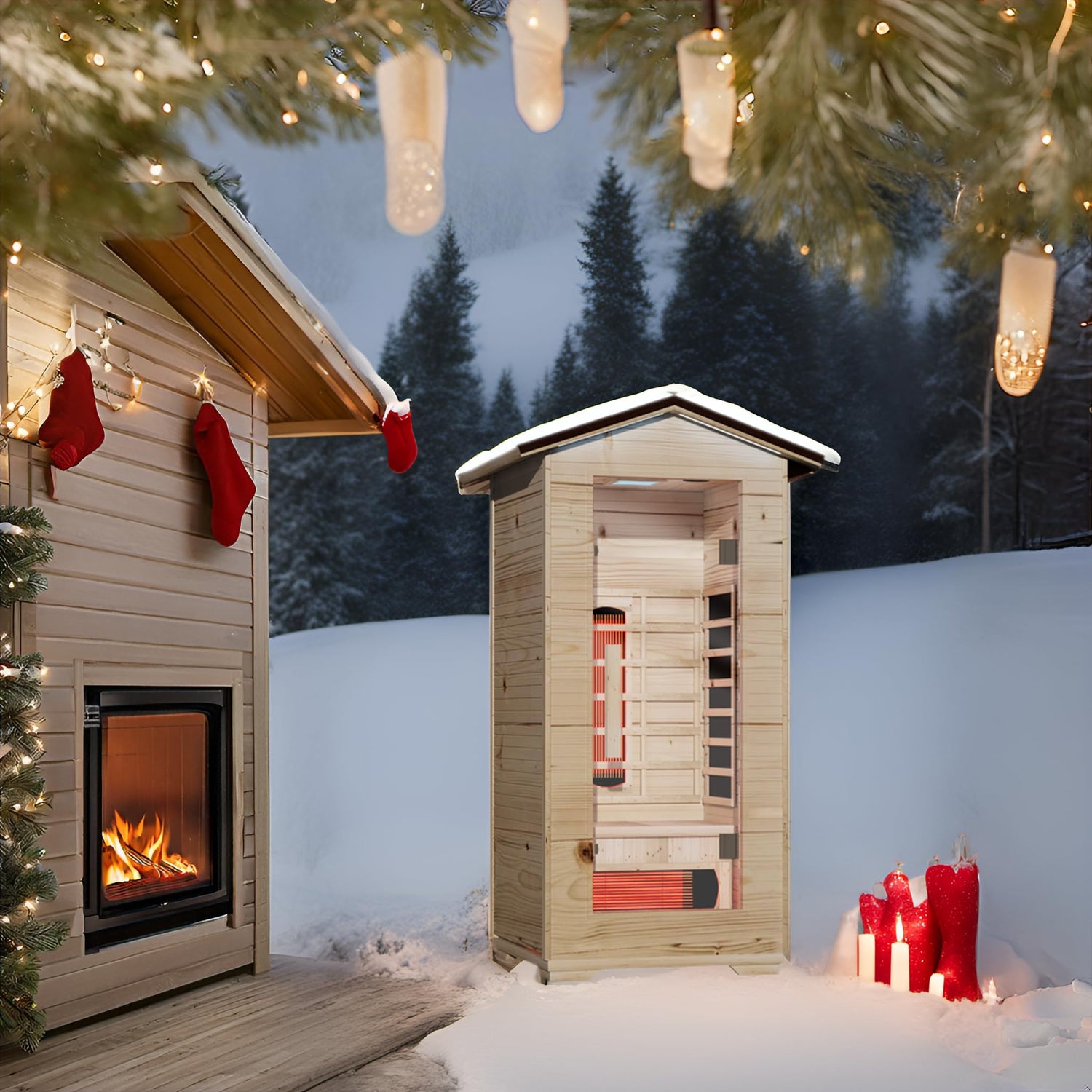 BNEHS Outdoor Infrared Sauna,1 Person Home Sauna with Rapid Warm-Up Heating Tubes & Panels,Wooden Sauna Spa Room with Chromotherapy Lamp,110V