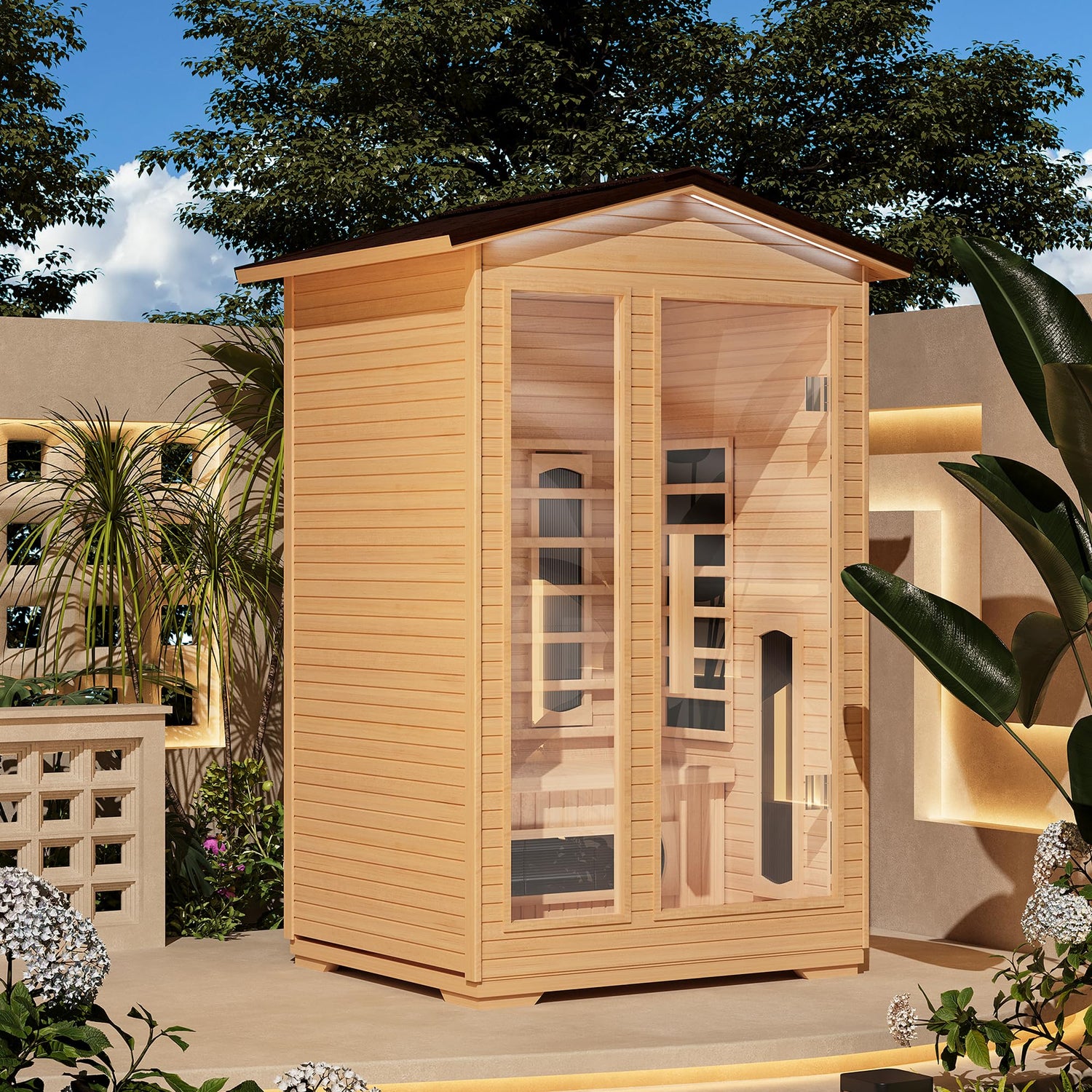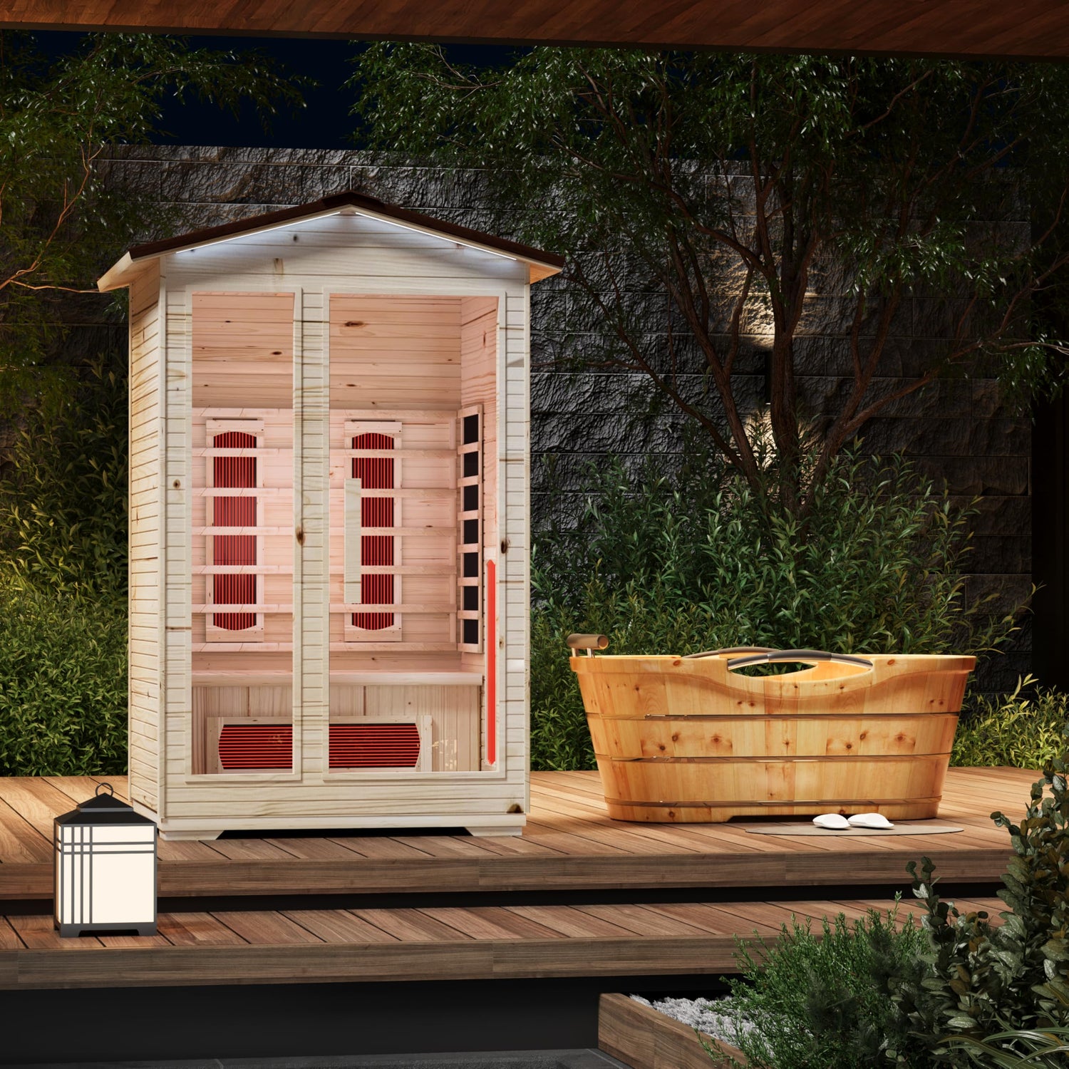 BNEHS Outdoor Sauna 2 Person,Full Spectrum Infrared Sauna,Home Sauna with 10 Minutes Warm Up Heating Tubes & Panels,Personal Wooden Sauna Room with Bluetooth Speaker,2050Watt