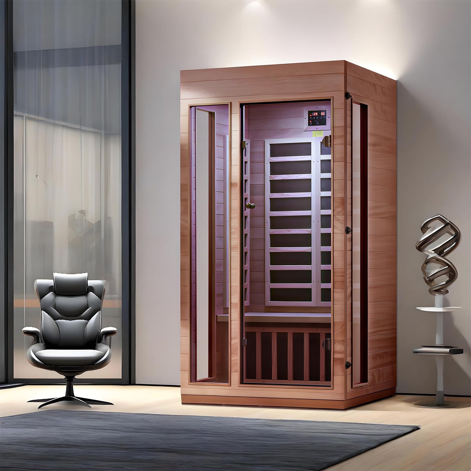 • 🌡️ Adjustable Temperature Control (68°F–149°F) Customize your session with precise interior controls for the perfect heat level every time.