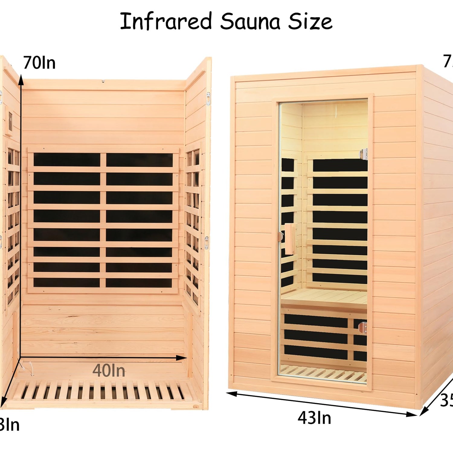 - 2 Person Infrared Sauna: The overall external size of the KUNSANA sauna for home is as high as 39.96*32.48*69.17 Inch , which can accommodate 2 people to take a sauna at the same time, suitable for height: 55 inches to 78 inches, Seats can hold up to 600 lbs.(300KG)