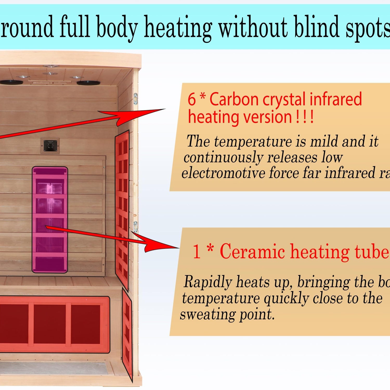 - FAR INFRARED SAUNA – The new generation of non-radiated carbon crystal far-infrared heating plate is used, with smooth wavelengths and better therapeutic effects, providing you with far-infrared therapeutic 3D surround heating. Built with ceramic heating cubes, 10 minutes quick preheat (Not maximum temperature) , meet multiple needs at the same time.