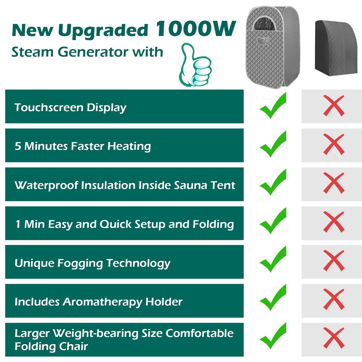 - 【Efficient Heating】The sauna box for home has a 1000 W steam generator that heats up in 10 minutes,Max 149℉