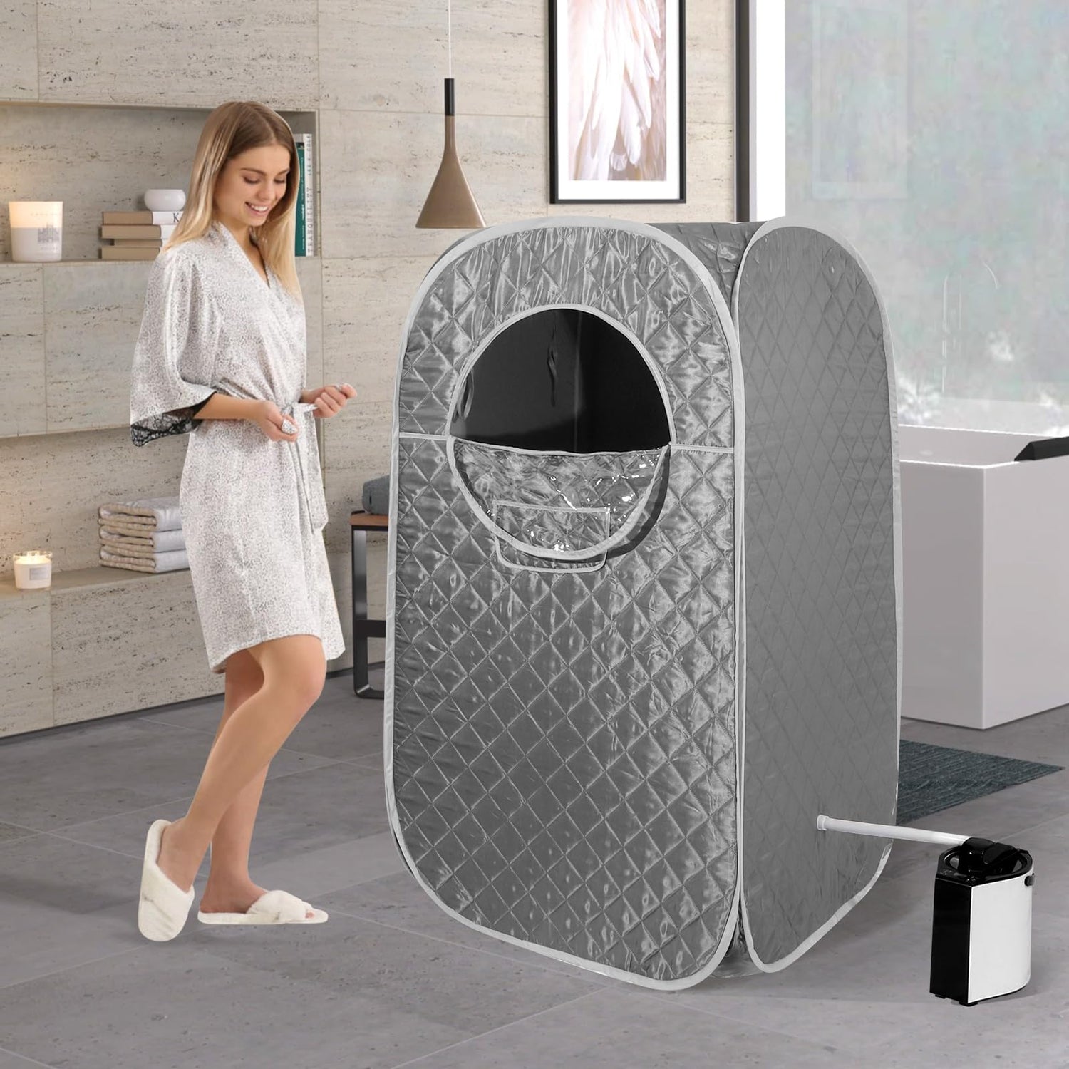 Portable Steam Sauna, Personal Sauna for Home,Steam Sauna,Sauna Box Sauna Tent with 3L Steamer, UV Atomization, Cycling Timer and 9 Levels - Silver