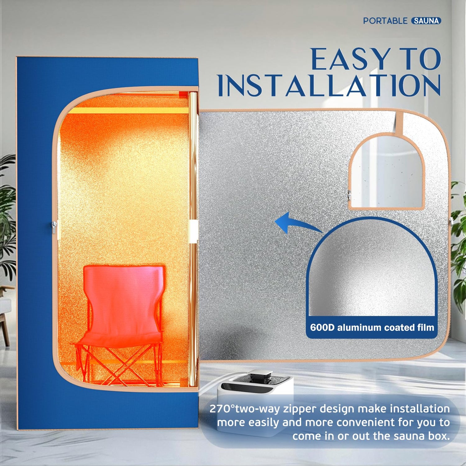 - 【Easy Install】- The portable home steam sauna tent is easy to install.It takes less than a minute to open the tent and less than 10 minutes to install the entire home steam sauna tent (Size after install: LxWxH - 31.5*31.5*70.87 inch). The one-piece zipper of the sauna tent is easier to install and remove. You can take it to your home, school, apartment, etc. The Velcro design on the top helps you secure the door of the home steam sauna tent. Make your entry and exit sauna tent more convenient.
