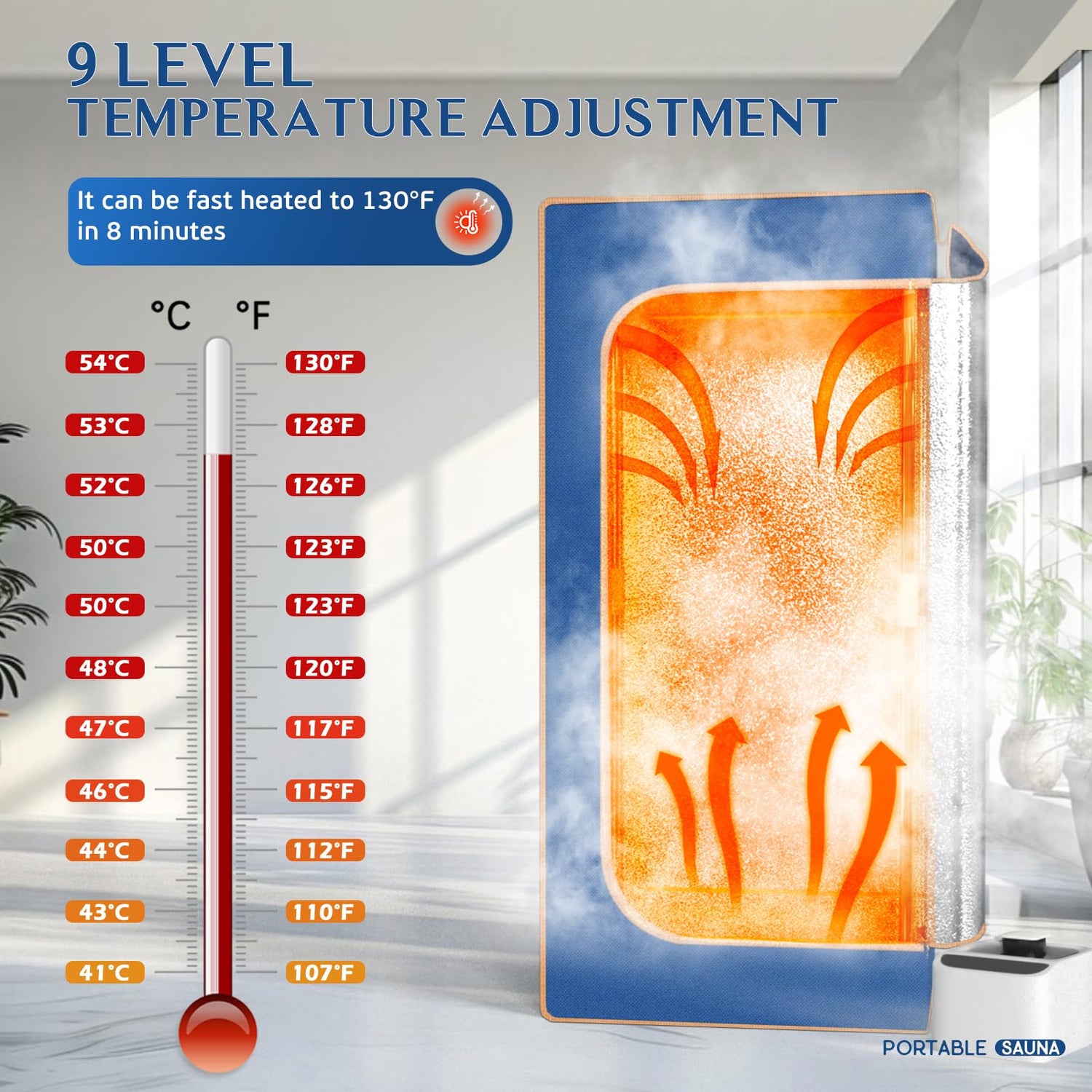 - 【9 Levels Heating & 15s Fast Heating】 - The full size personal sauna box has 9 levels heating and can reach maximum temperature of 140℉. The 2.6L large capacity sauna steamer with 1000W heating element, can reach maximum temperature of 120°F/50°C in 15 minutes. The sauna steamer can be set to run for 1-90 minutes, allowing you to fully enjoy the steam sauna spa at home. The full size personal sauna box is equipped with remote control that allows you to control the heating level and timing