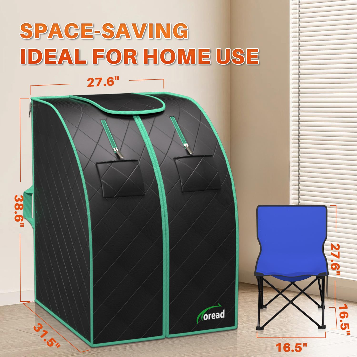 - No Assembly Needed: TOREAD home sauna infrared features an integrated design—just open it and use it, no tools required. The front of the sauna tent is equipped with two fiberglass support rods. Once inside, you can secure the pole for extra support, keeping the sauna tent stable and preventing deformation. Compact in size but spacious inside, it comfortably fits an adult. After use, it can be folded and stored in a closet