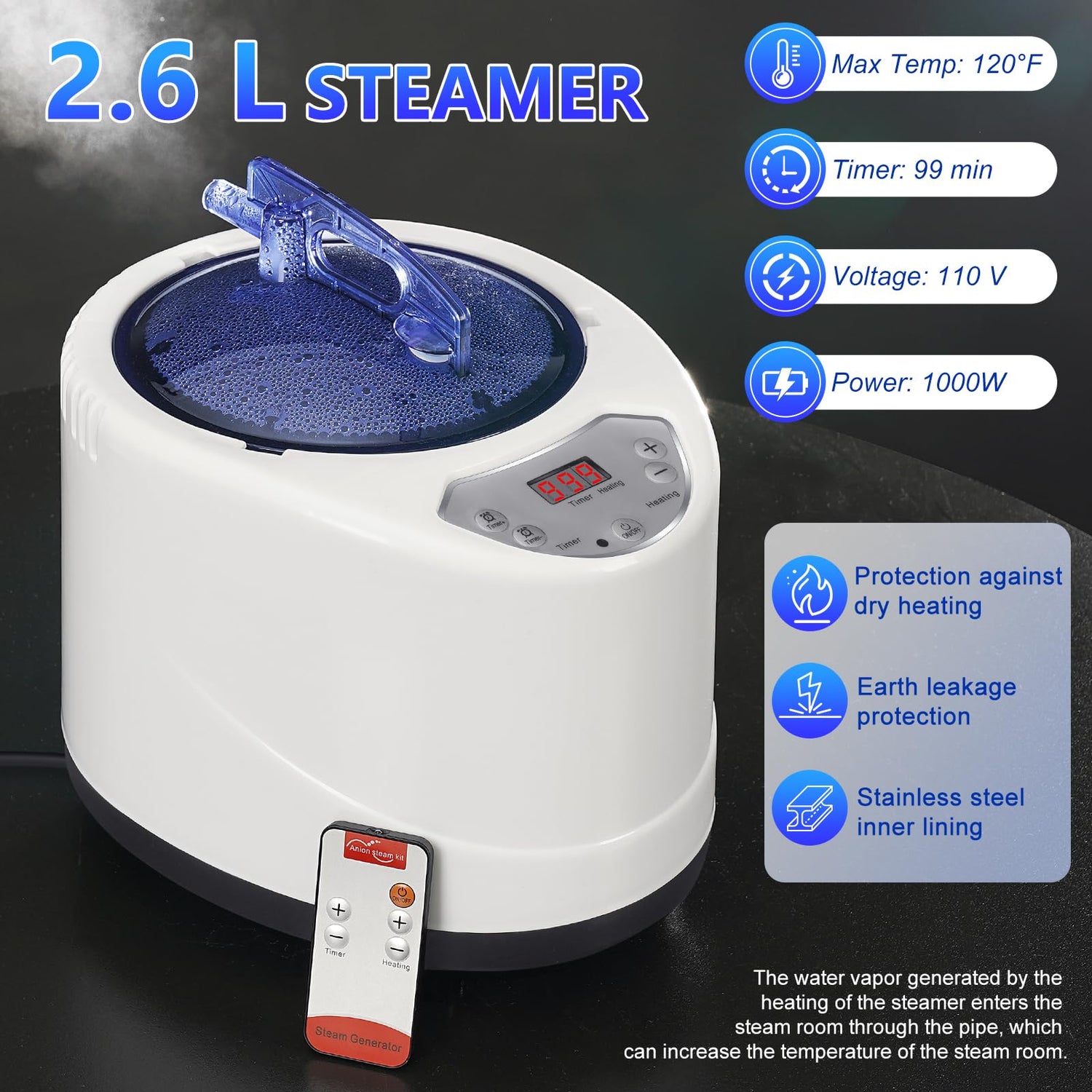 - The high-power steamer can quickly generate steam and shorten the preheating time. You can set the temperature and time on the steamer or with the remote control. X-Vcak home sauna has anti-dry burning and anti-leakage functions, allowing you to enjoy the sauna with more peace of mind