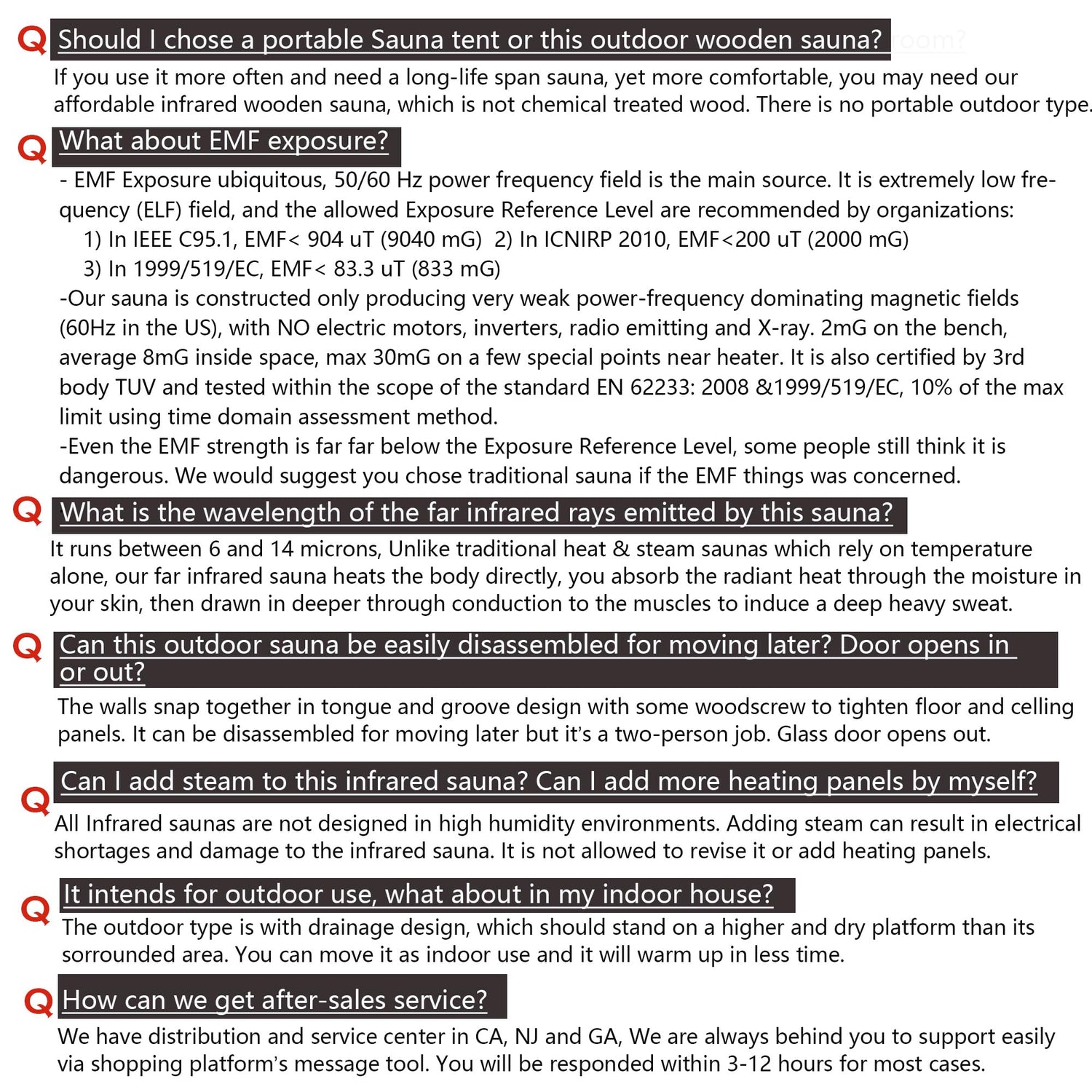 - [IMPORTANT NOTICE] As an oversized high quality sauna, shipping via LTL delivery & SIGNATURE REQUESTED. Pls double confirm consignee's phone# and delivery address before submitting your order. Phone NOT WORKING AND UNREACHABLE will result in delivery push back even undeliverable. Carrier may fail to reach consignee for appointment and thus the experienced buyer might reach our carrier for final delivery appointment. our Amazon buyer and seller message center is always to answer your questions.