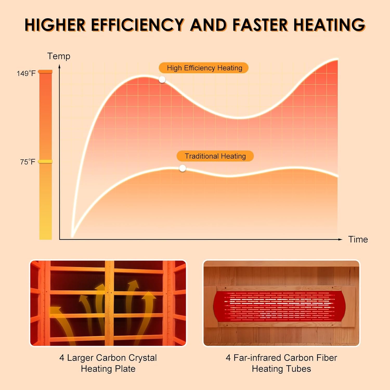 • RAPID HEATING: 3400W power,10 heaters, 10-15 minutes fast warm-up.Max temperature 60℃/140 ℉ to 65℃/149 ℉, 5 ceramic heaters and 5 carbon fiber panels, surround your body with even heat. The bottom of the sauna room is equipped with tourmaline stones, allowing you to absorb minerals while enjoying the sauna