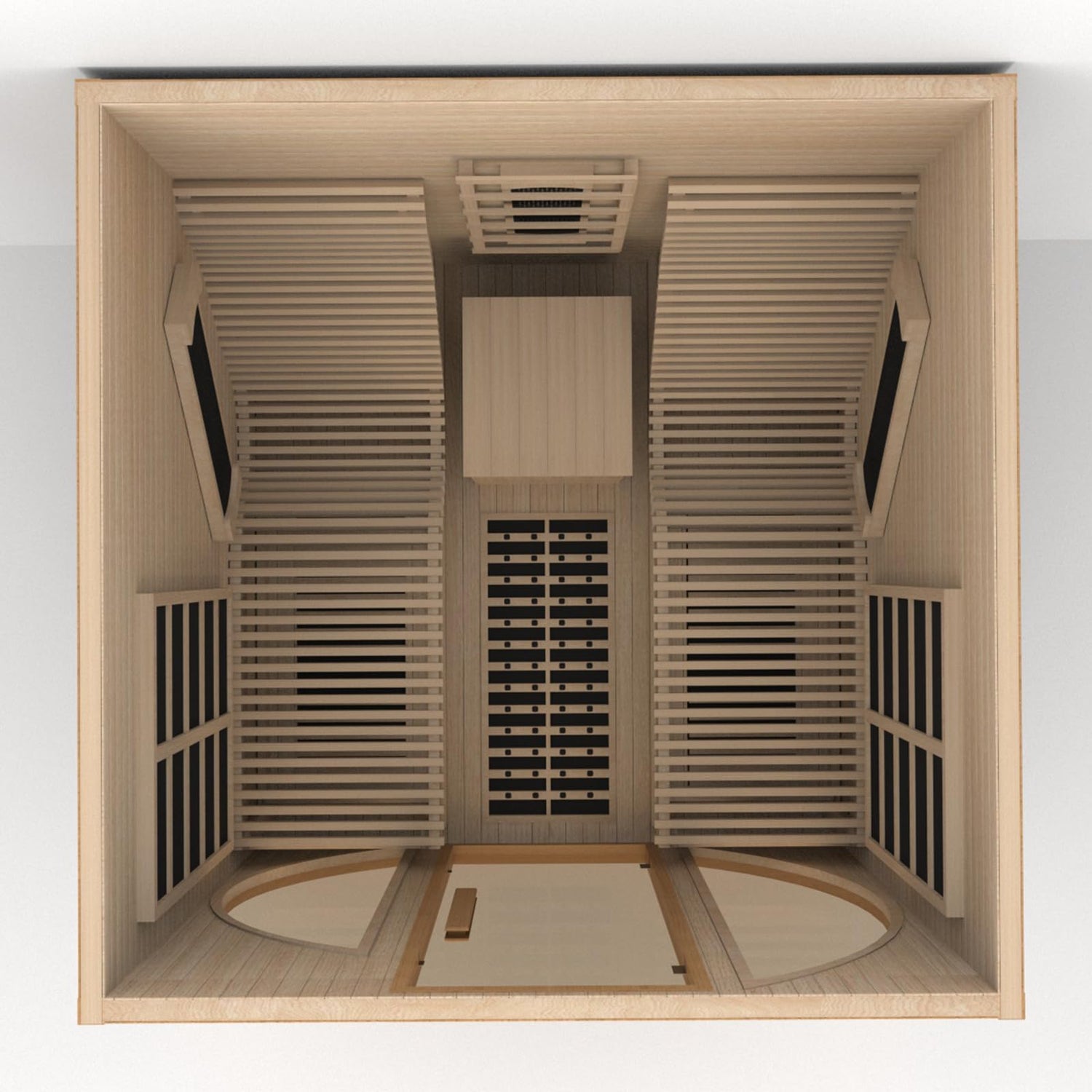• Features: Room capacity: 2-person interior space size, luxurious sauna dimension-5.9' ft x 5.9' ft x 6.23' ft (1800*1800*1900mm). Seat load: 600 lb (300 kg). Perfect roomy size for 2 person full body spa. The sauna comes with tempered glass that allow you to see outside the sauna while being durable enough to withstand high temperatures
