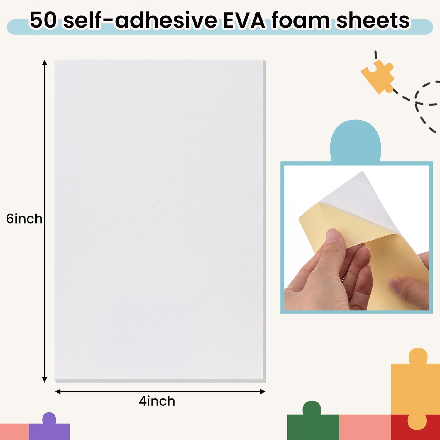 - Comprehensive DIY Package: Our package isn't just a jigsaw machine; It's a complete DIY kit. Alongside the puzzle machine, you'll receive 50 self-adhesive EVA foam sheets, each measuring 4 x 6 inches, and 50 jigsaw puzzle storage bags. These components give you the freedom to start your puzzle crafting journey immediately. It's everything you need in one convenient package to unleash your inner artist