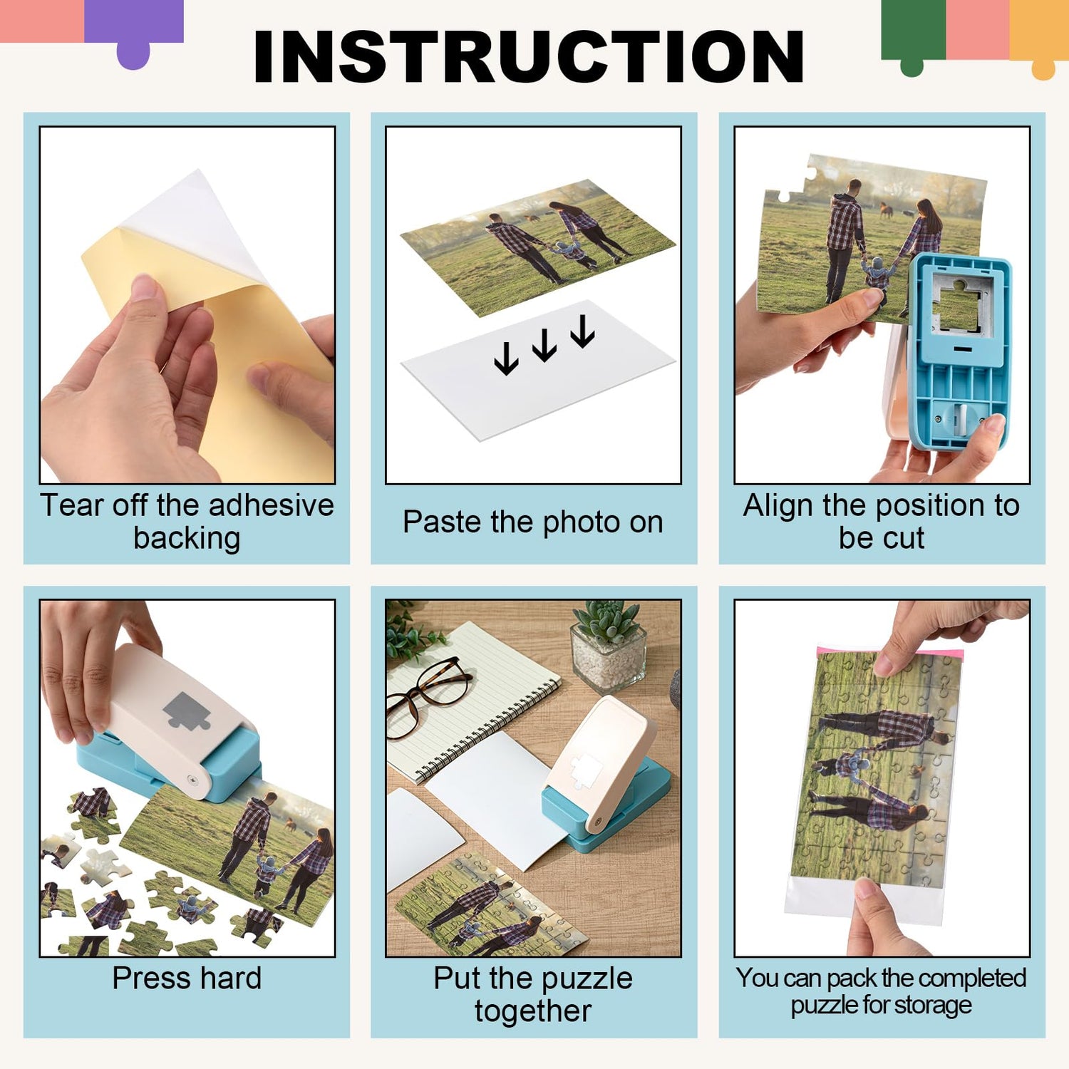 Talltalk DIY Photo Puzzle Maker Set Jigsaw Puzzle Puncher with Adhedive Foams and Stroage Bags Photo Cutter Machine for Personalized Customized Pictures Making Tool