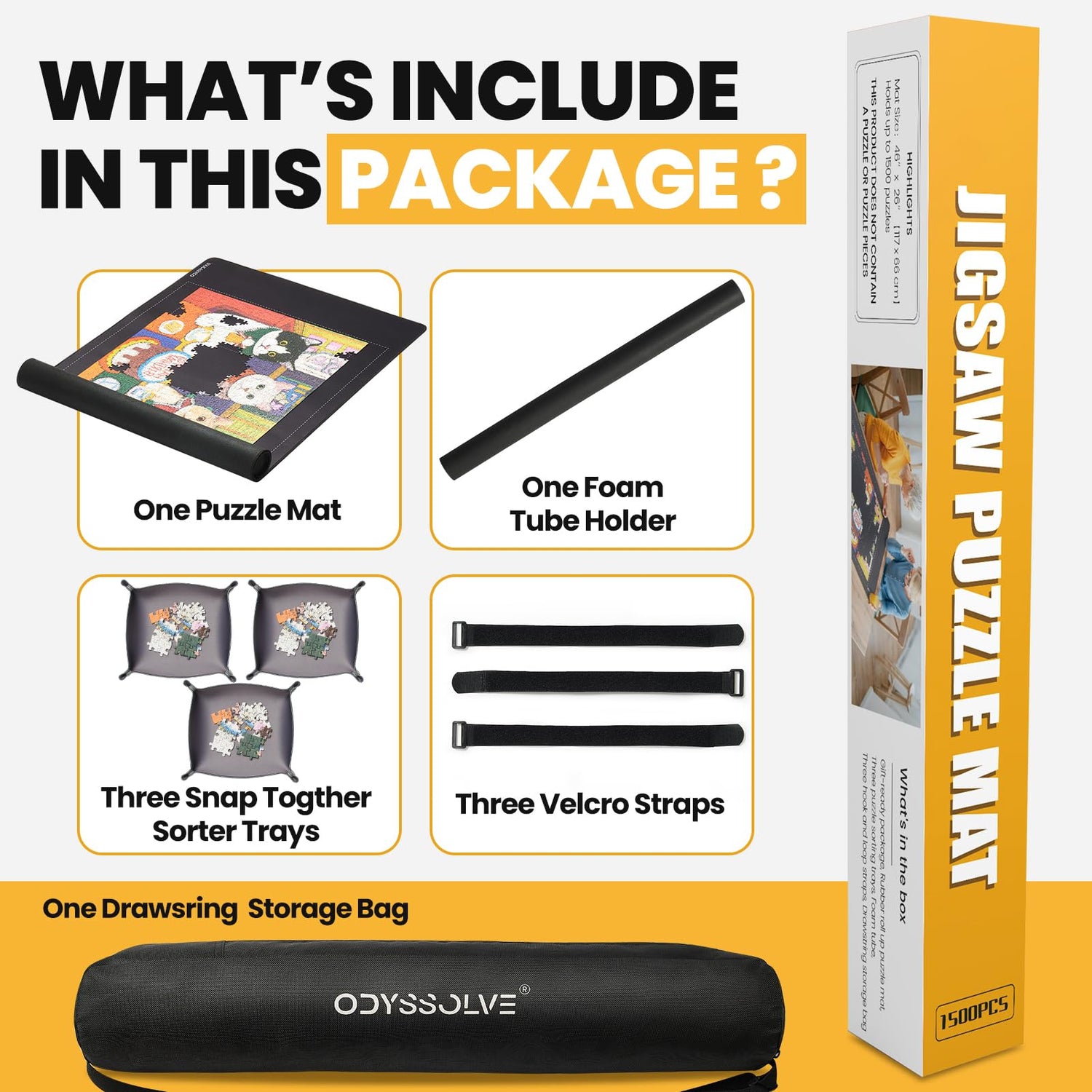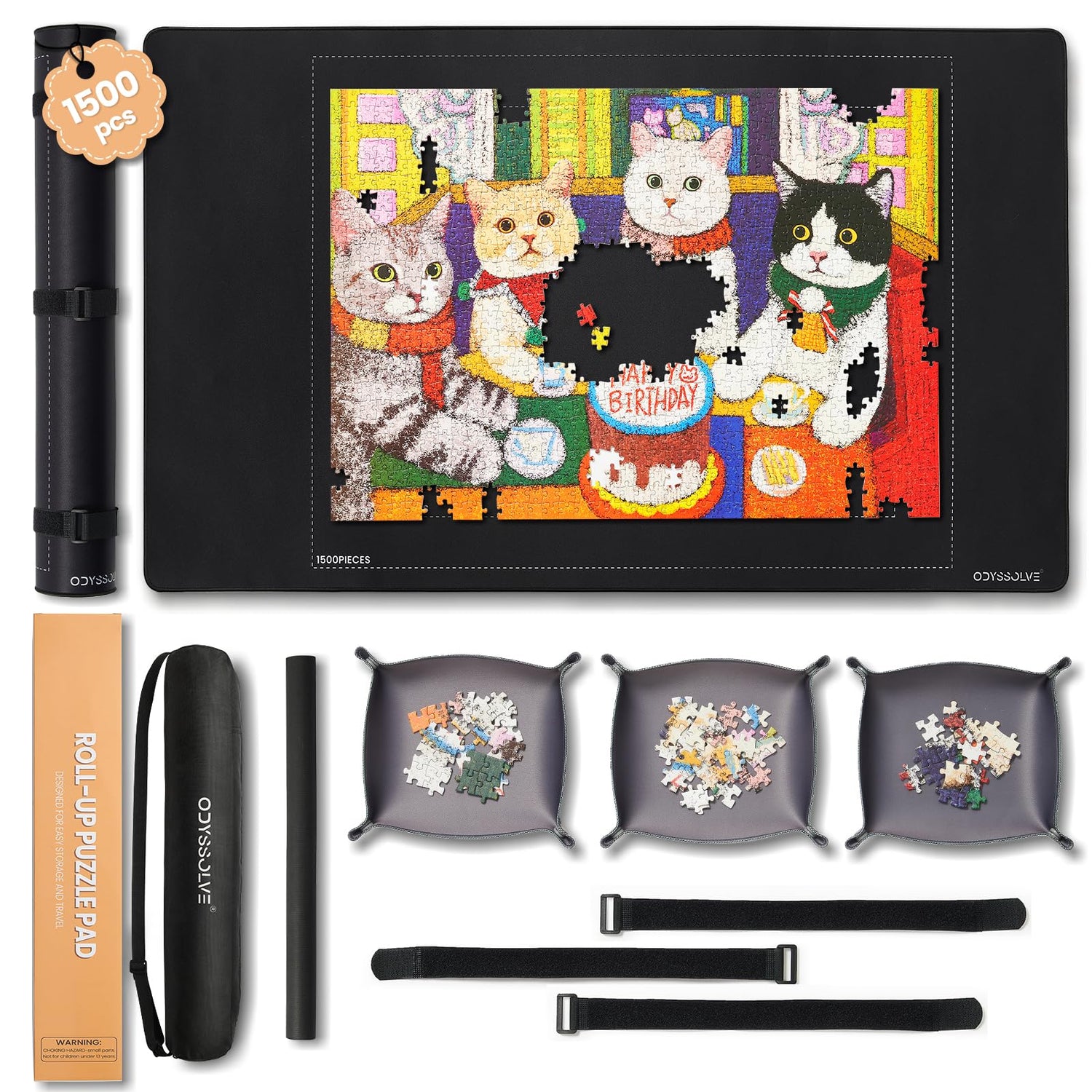 Odyssolve Jigsaw Puzzle Mat Roll Up 1500 Pieces Saver Pad 46" x 26" with 3 Sorting Trays & Travel Storage Bag Portable Non-Slip Rubber Bottom