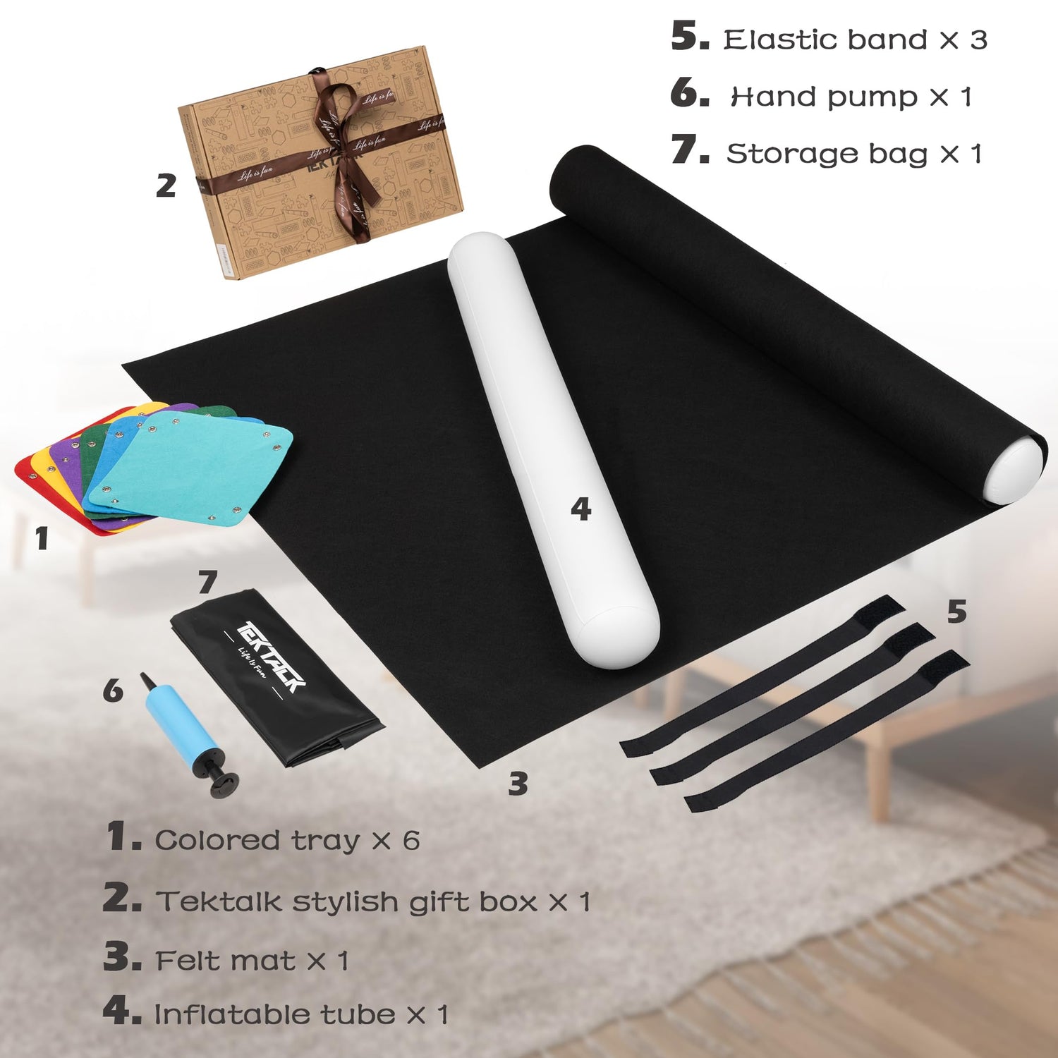 • Package Contents - Felt mat × 1, hand pump × 1, felt trays × 6, inflatable tube × 1, elastic band × 3, storage bag × 1. Exquisite present box makes it a perfect present for all ages. Please note that package includes no jigsaw puzzles.