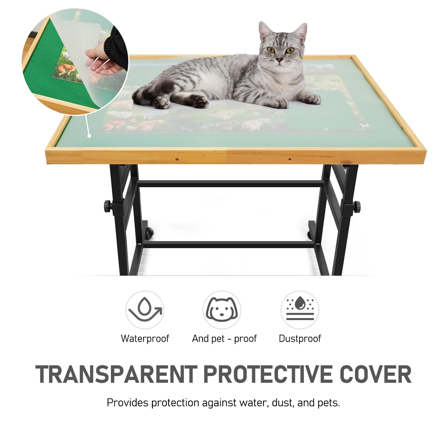 - Durable and Secure Cover: The BuilderButler puzzle table comes equipped with a semi-transparent cover that protects against dust, water, and pets, ensuring your puzzle and tabletop remain clean and undamaged for continuous, worry-free use.
