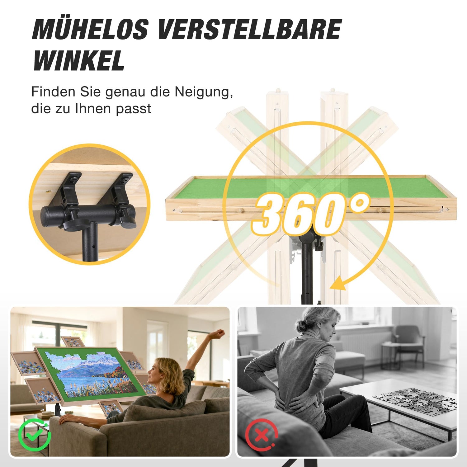 - 90° Adjustment, 4-Point Locking Stability: The tabletop can be adjusted vertically up to 90°. 4 locking knobs securely fasten the board of the the puzzle table for adults at any angle, ensuring exceptional stability so you can focus on your puzzle. This design also allows for neat storage, keeping your living space tidy and organized