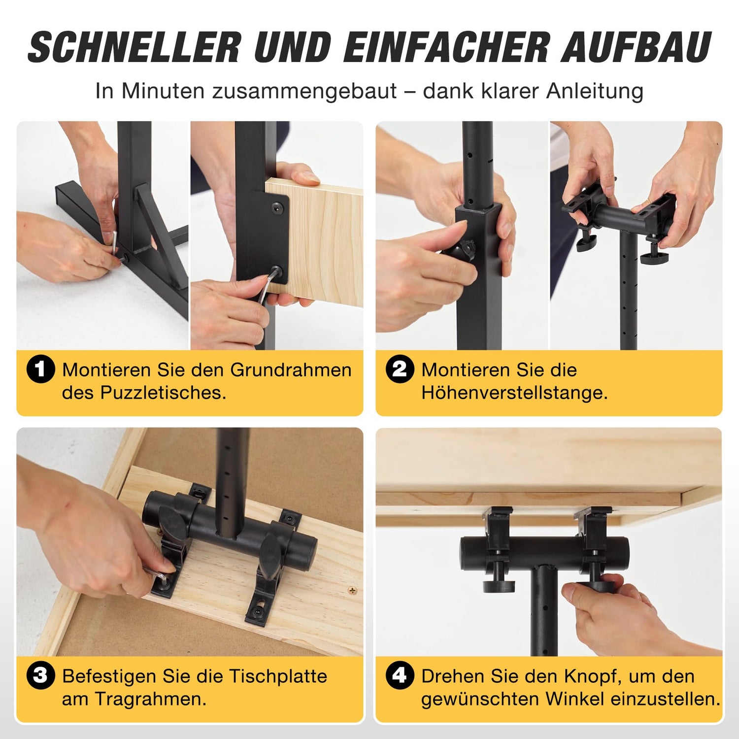 - Find Your Ideal Fit & Tilt: Engineered for comfort, this puzzle table with tilt adjusts in height from 27.6" to 34.7". Its surface locks securely at 4 positions up to 90°. This design supports a healthy posture for hours of enjoyable puzzling