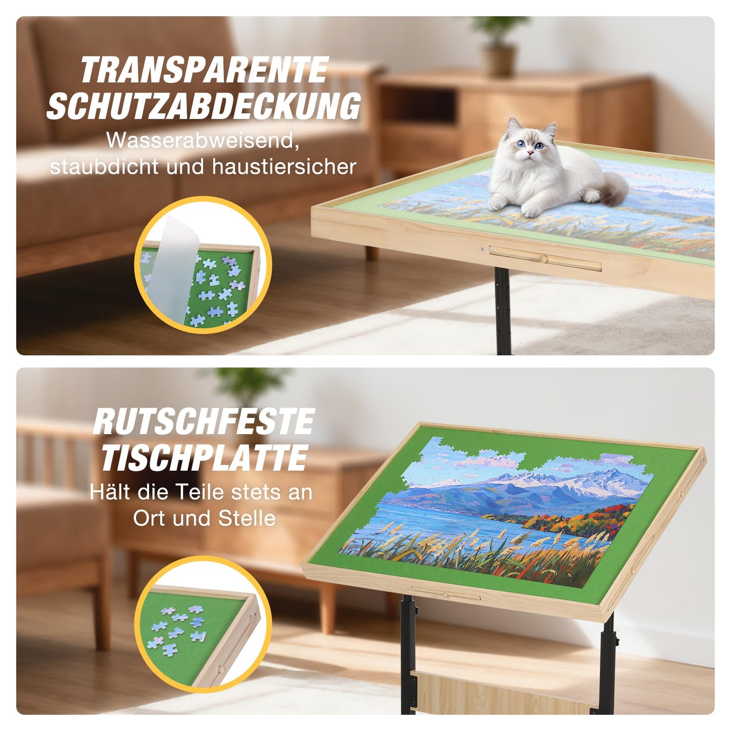 FUNTOK 1500 Piece Puzzle Table with Legs for Adults, Portable Wooden Puzzle Board Table with Drawers, Adjustable Height, 4-Tilting-Angle, Transparent Cover, Non-Slip Felt Surface, Present for Mom
