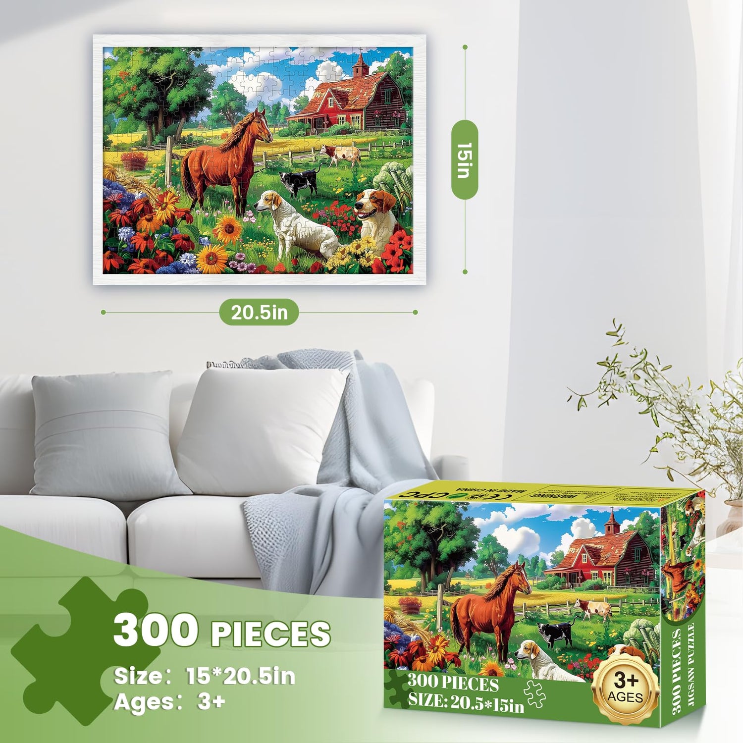 300 Piece Puzzles for Adults,Dogs and Horses Large Piece Jigsaw Puzzle for Adults Kids Seniors,Recycled Cardboard Dogs Puzzle 300 Piece,Family Activity Great Gift for Family Friends 20.5 * 15 in