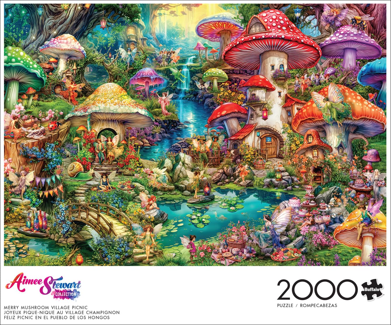 Buffalo Games - Aimee Stewart - Merry Mushroom Village Picnic - 2000 Piece Jigsaw Puzzle for Adults Challenging Puzzle Perfect for Game Nights - Finished Size is 38.50 x 26.50