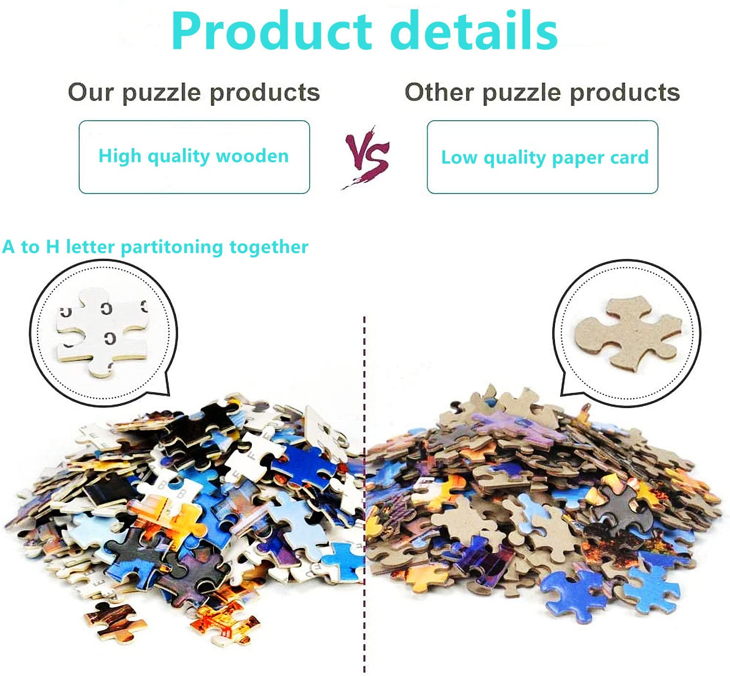 - 🔶【1000 Pieces】 - Back sides of puzzle pieces are marked with English letters and divided into areas. Puzzle finish size:27.56" x 19.69"/70*50cm,Be made of wood,thick and sturdy