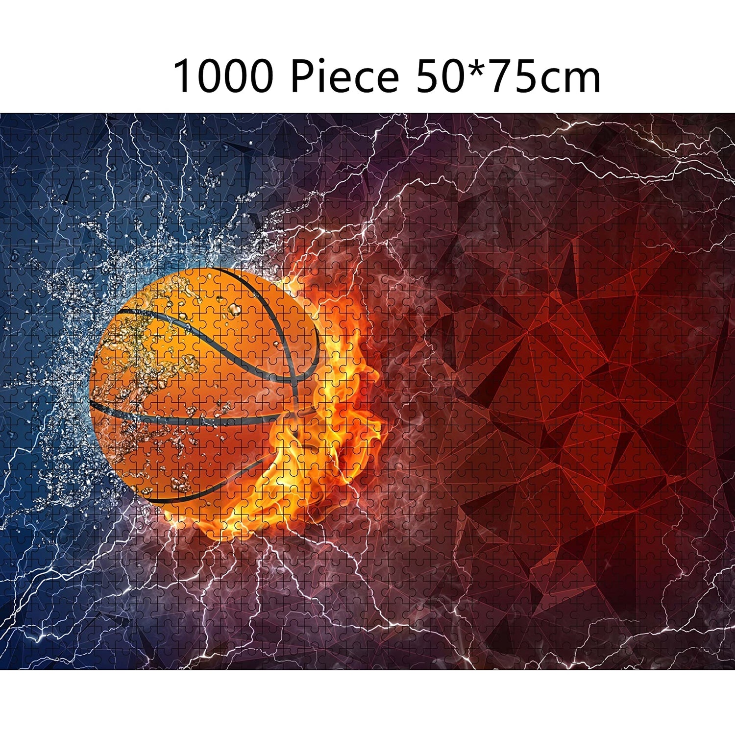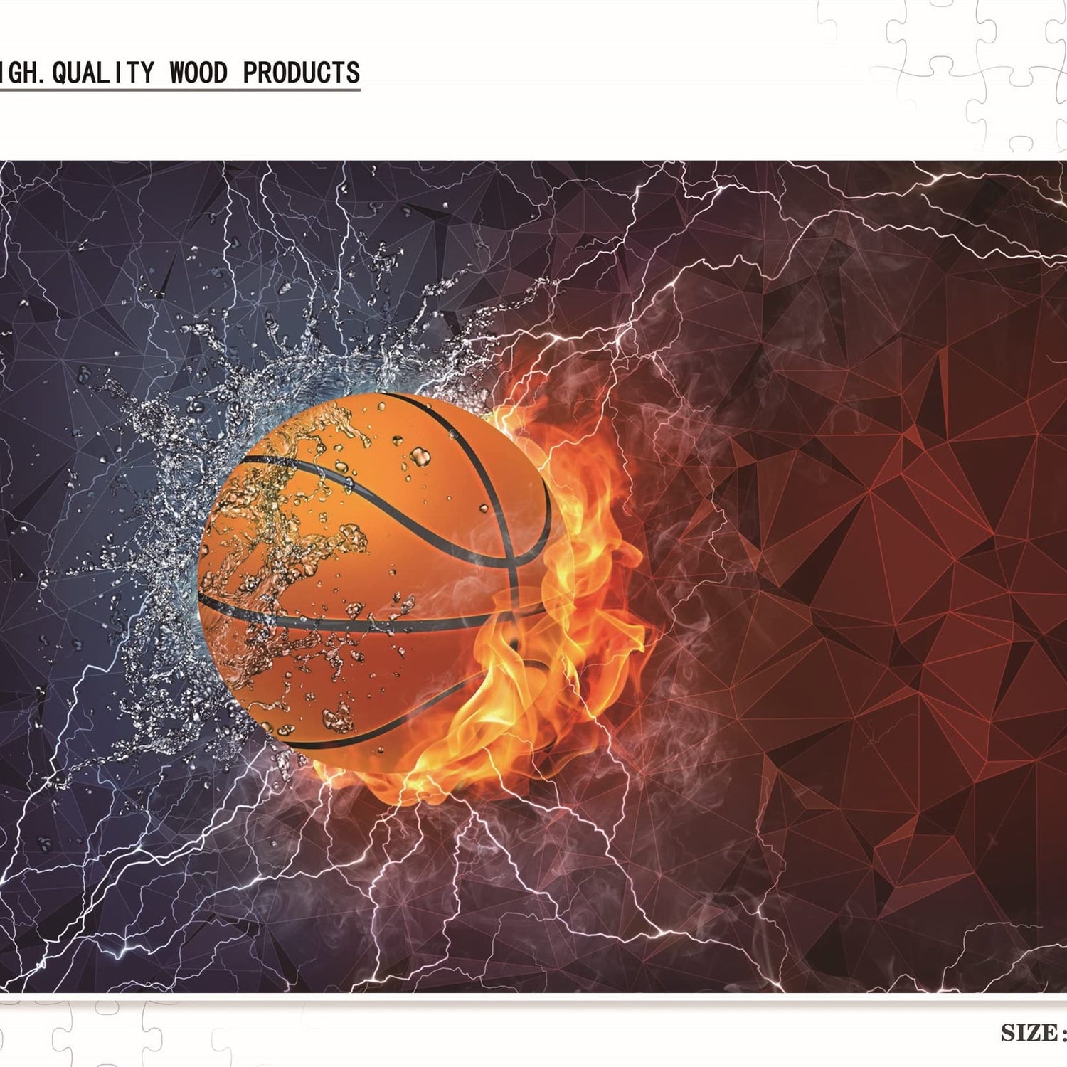 Jigsaw Puzzles 1000 Pieces for Adults -Basketball Ball on fire- Premium Wooden Perfect Interlocking Clear Printing