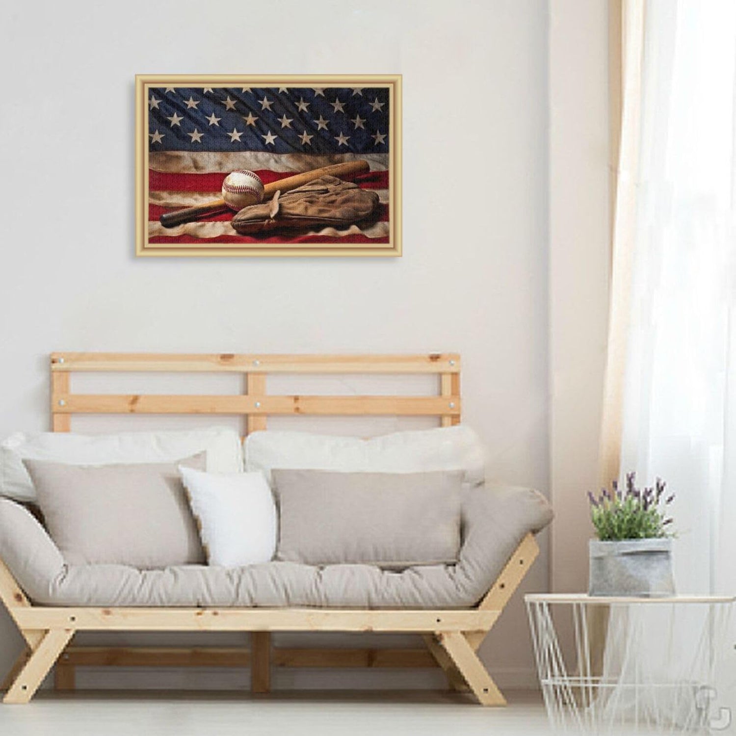 Kigai Baseball American Flag 500 Pieces Wooden Jigsaw Puzzle for Adults Teens Kids, Fun Family Game for Holiday Toy Gift Home Decor