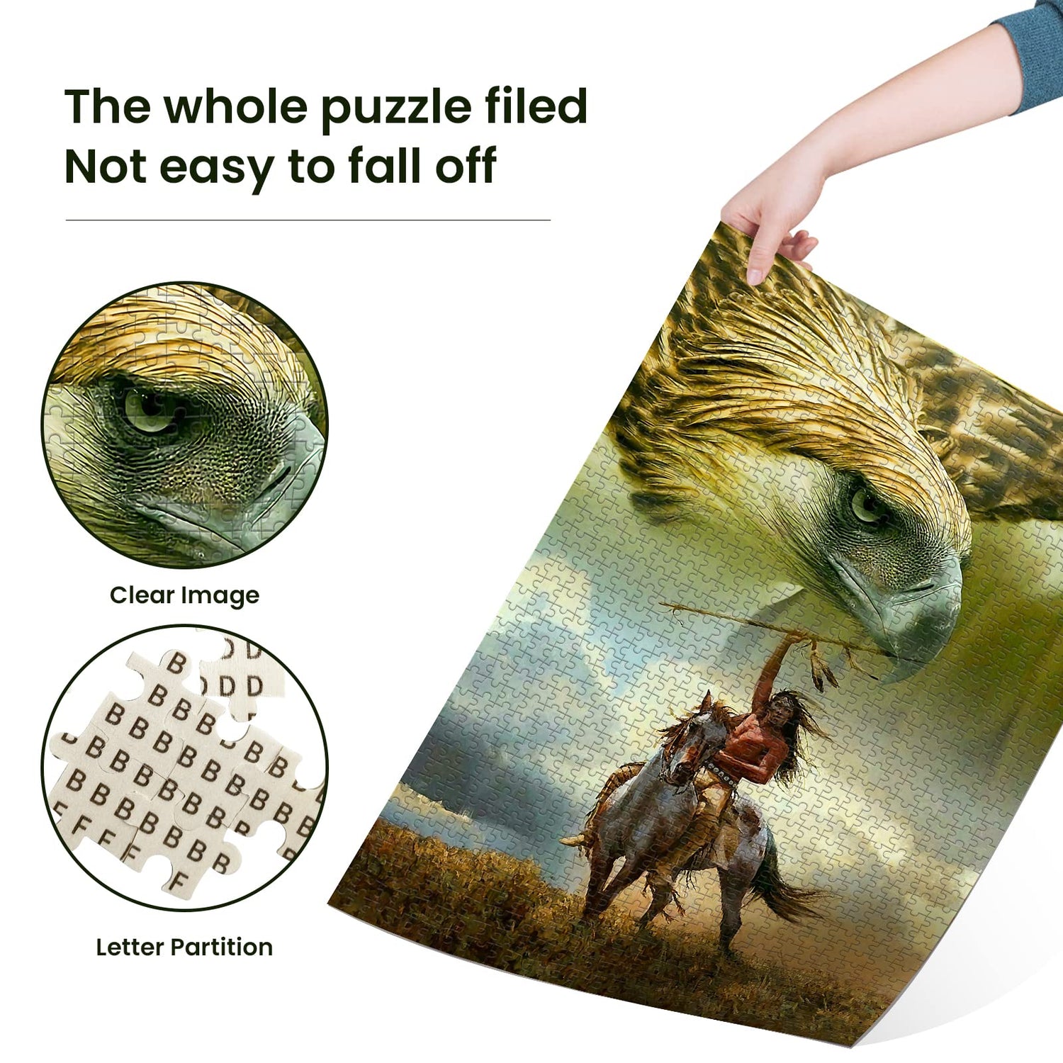- [GREAT GROUP PROJECT]: 1000 piece American Indian warrior puzzle is the best choice for family activities.You can accompany your family when he or she play with wooden puzzles. It is a very interesting way to interact with your family and have a good time.