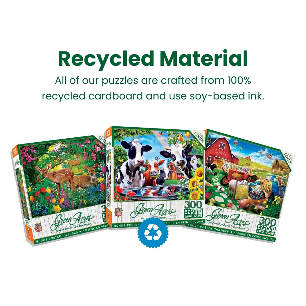 - ENVIRONMENTALLY FRIENDLY: Our puzzles are made from recycled material and non-toxic, soy-based inks for eco-friendly fun!