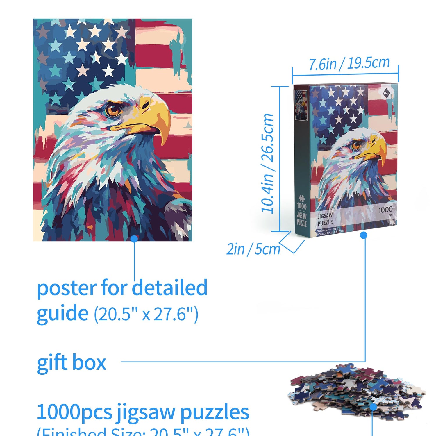 - Premium Puzzles - The puzzles for adults 1000 pieces are printed with HD American flag and eagle artwork, fit together perfectly, clean edges, zero dust, no warping, no bending, and no rough cardboard.