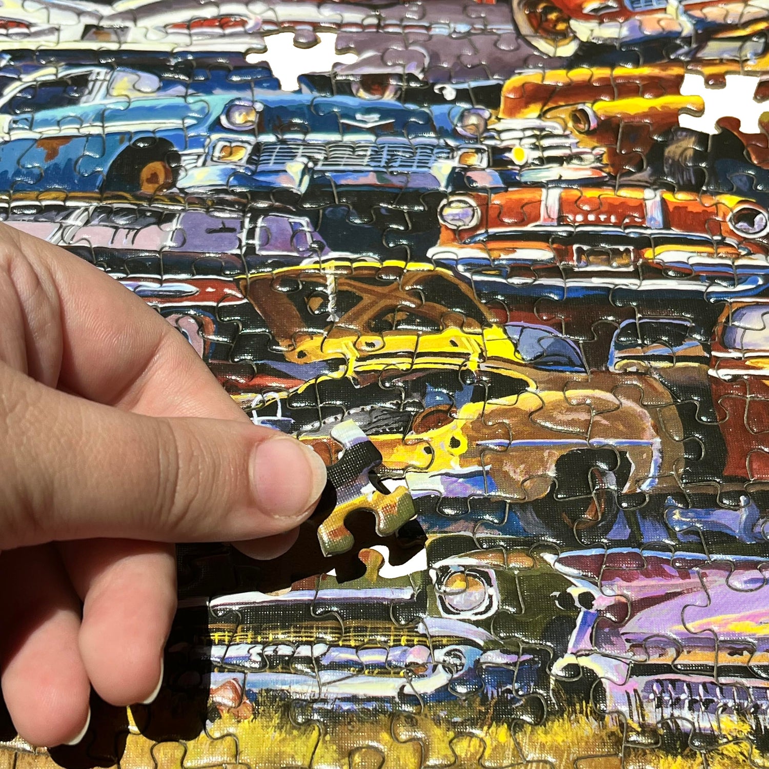 - CLASSIC CAR JIGSAW PUZZLE: Love lowrider cars? This vibrantly colored large puzzle featuring 1950’s cars piled on top of each other is perfect for you. Perfect for adults interested in classic cars, history, and work on skills and strategy.