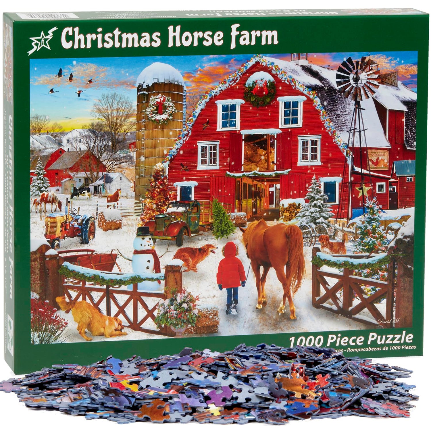 Vermont Christmas Company 'Christmas Horse Farm' Jigsaw Puzzle 1000 Piece - Fully Interlocking & Randomly Shaped Pieces - 26 5/8" x 19 1/4"