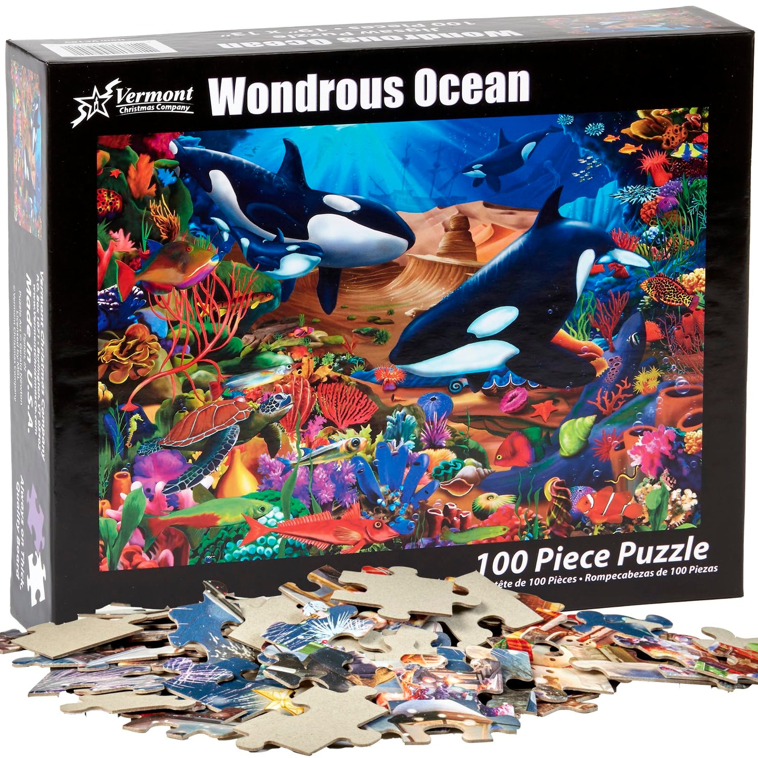 Vermont Christmas Company Wondrous Ocean Jigsaw Puzzle 100 Piece, Large Pieces Perfect for Kids and Seniors