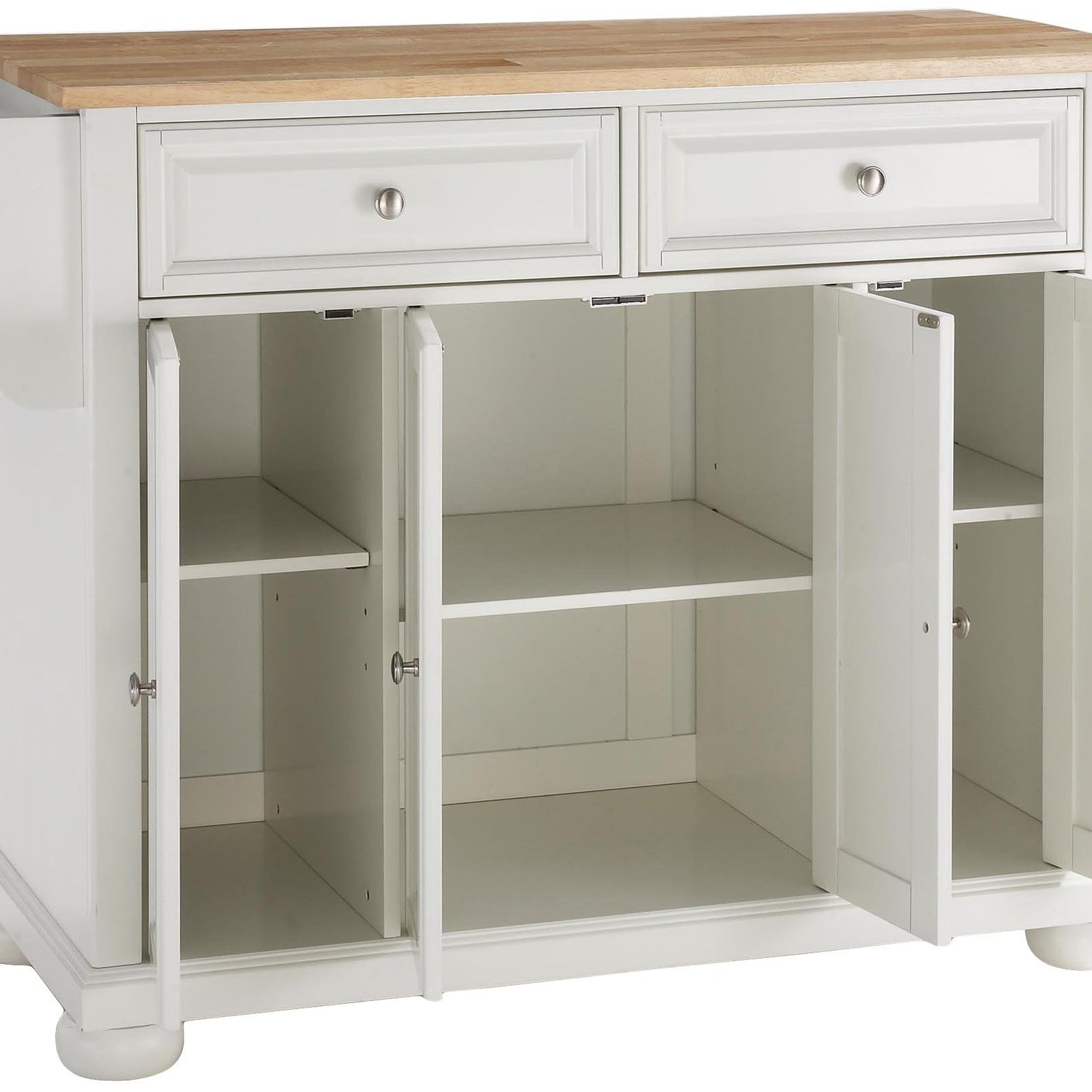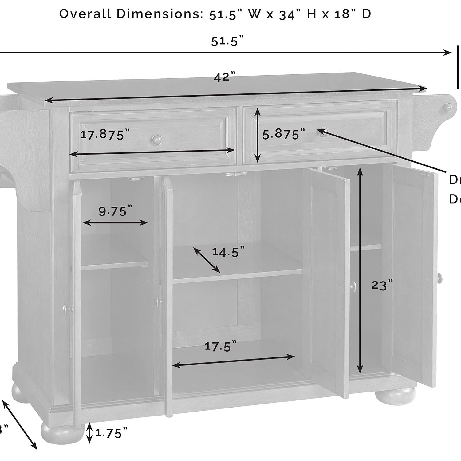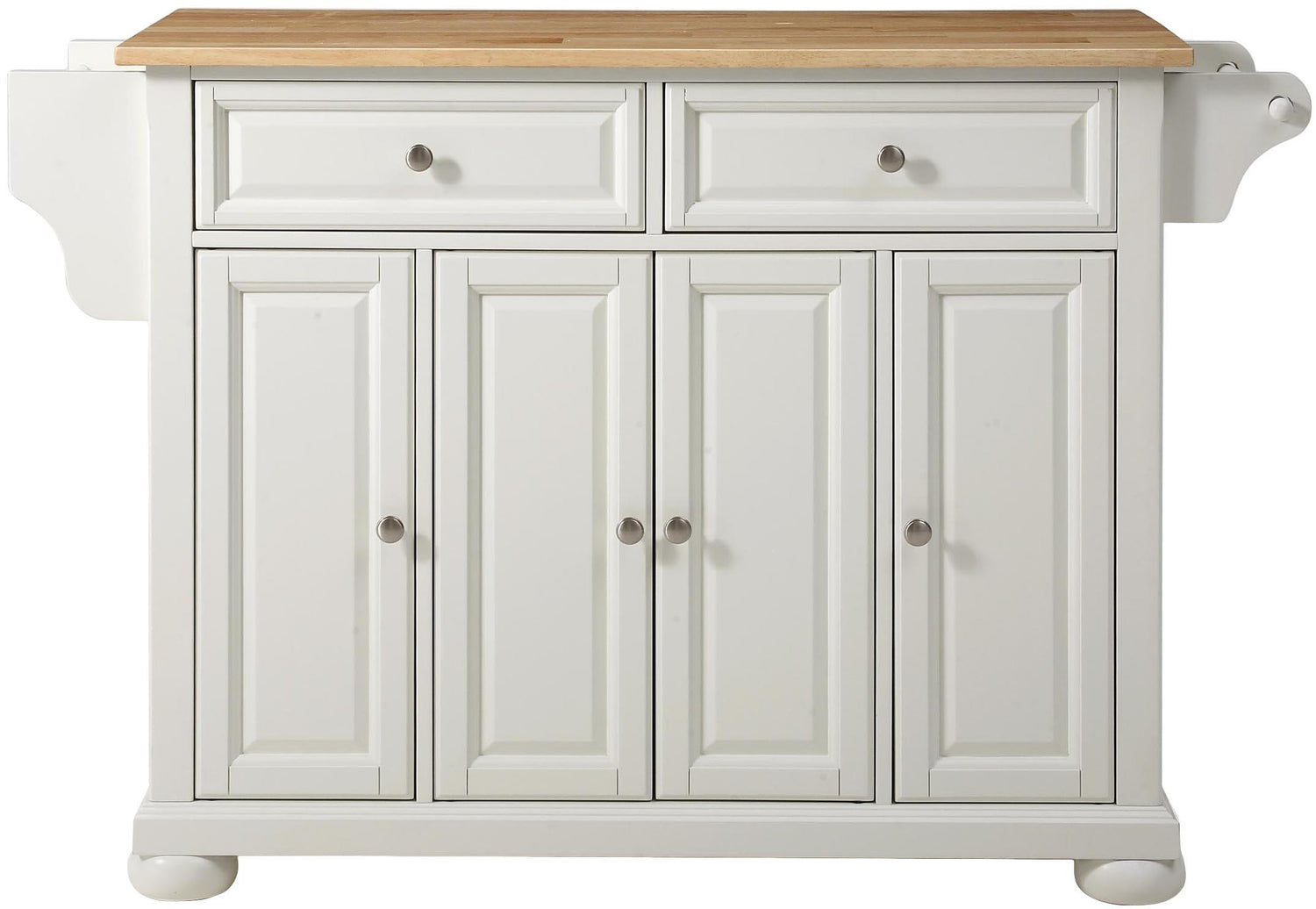 Details: The Alexandria Full-Size Kitchen Island adds enduring style and storage to your kitchen. Featuring three cabinets, each with an adjustable shelf, this island can easily store pots, pans, and small appliances. Two large drawers keep small items like utensils and dishtowels close at hand, while the built-in spice rack and paper towel holder keep your counter space free of clutter. With a beautiful wood countertop and classic bun feet, the Alexandria Full-Size Kitchen Island is a welcome addition to your kitchen space.