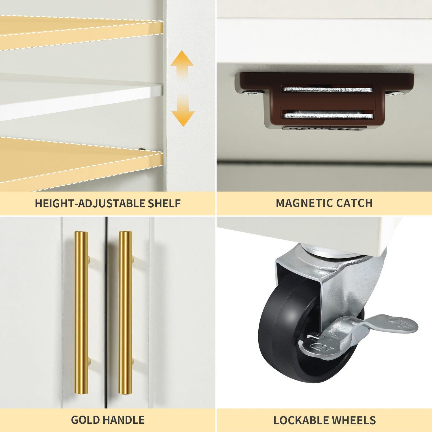 - Lockable Rolling Wheels: Smooth 360° swivel casters allow the cart freely move wherever you need it, and they can be locked to keep it in place for food preparation or storage; Choose not to install the wheels so that the cabinet will be an eye-catching stationary centre island in your kitchen