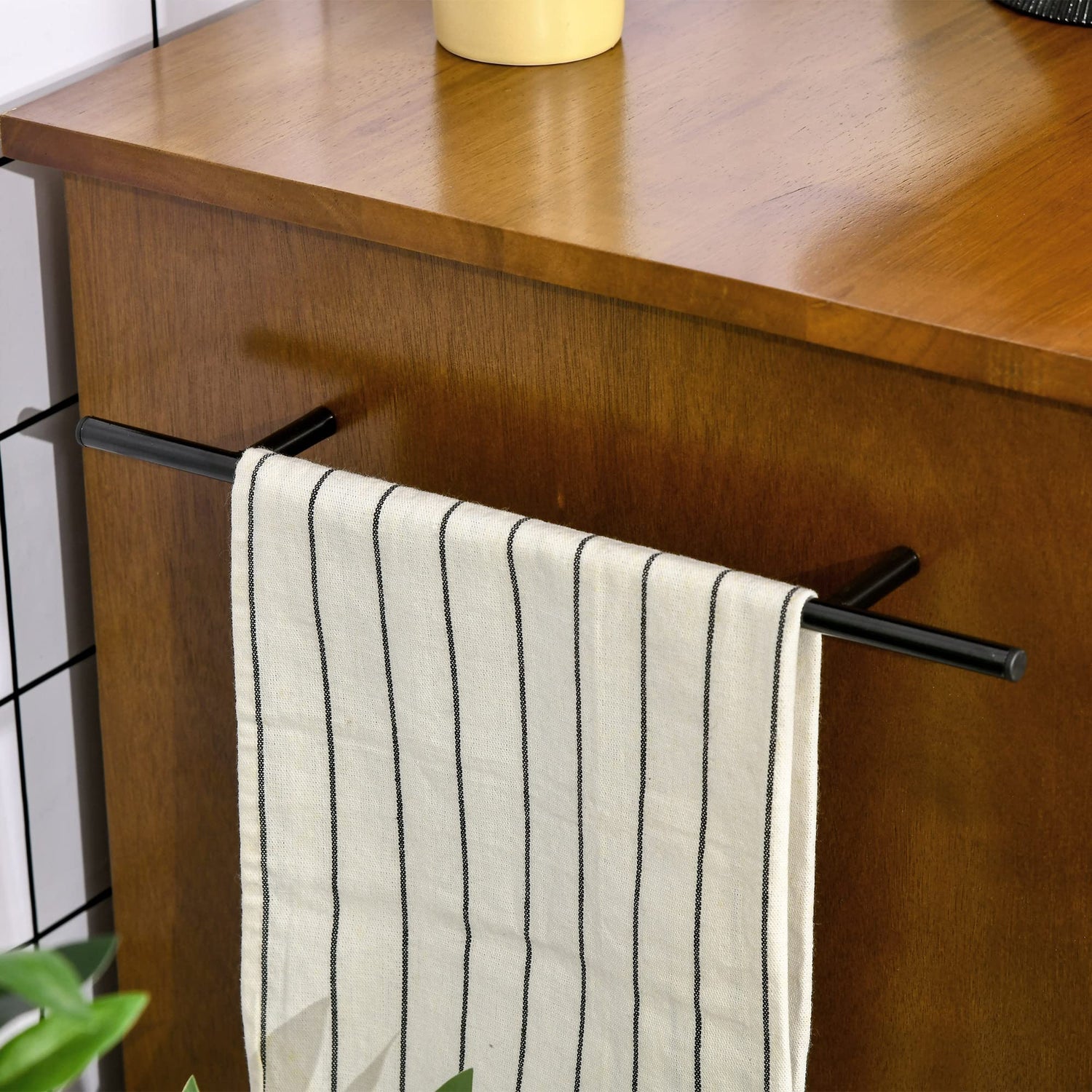 - Ample Storage Space: This bar cart offers a compact solution to the lack of storage in your kitchen space with a drawer, two towel racks and a cabinet with an adjustable shelf inside.