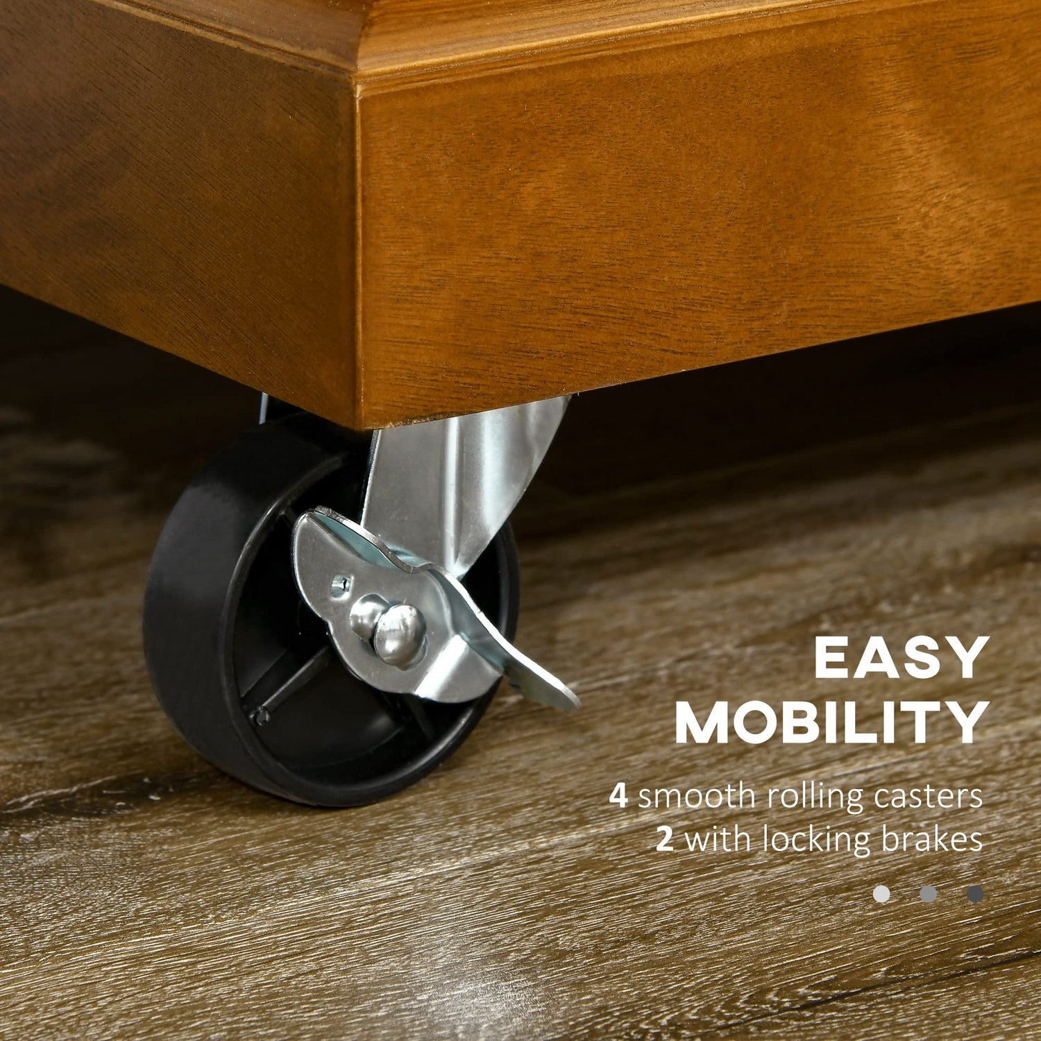- Easy Mobility: No matter what surface you need to take this kitchen island cart on, the four wheels help you get there effortlessly. Two wheels lock for safety when you need it in place.