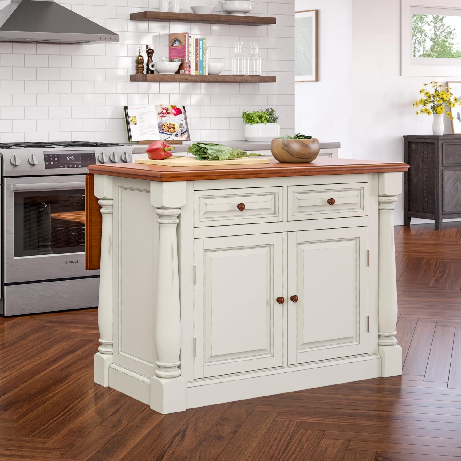 Homestyles Monarch Kitchen Island Set, 50 Inch Width, Antique White