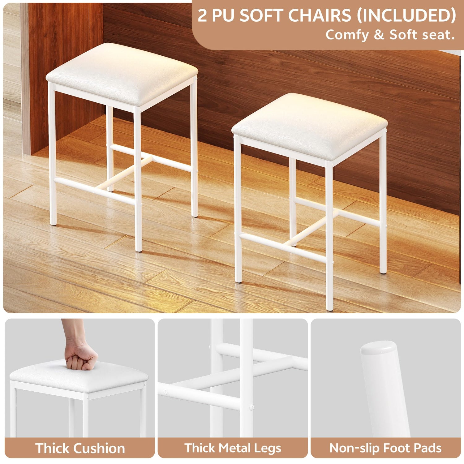 - Mobile Kitchen Center: Transform your culinary space with this generously sized rolling kitchen island featuring two upholstered stools that provide comfortable seating while storage neatly underneath. Four smooth-rolling wheels allow you to effortlessly reposition this island table anywhere - designed for cooking and dining while maintaining a clutter-free kitchen.