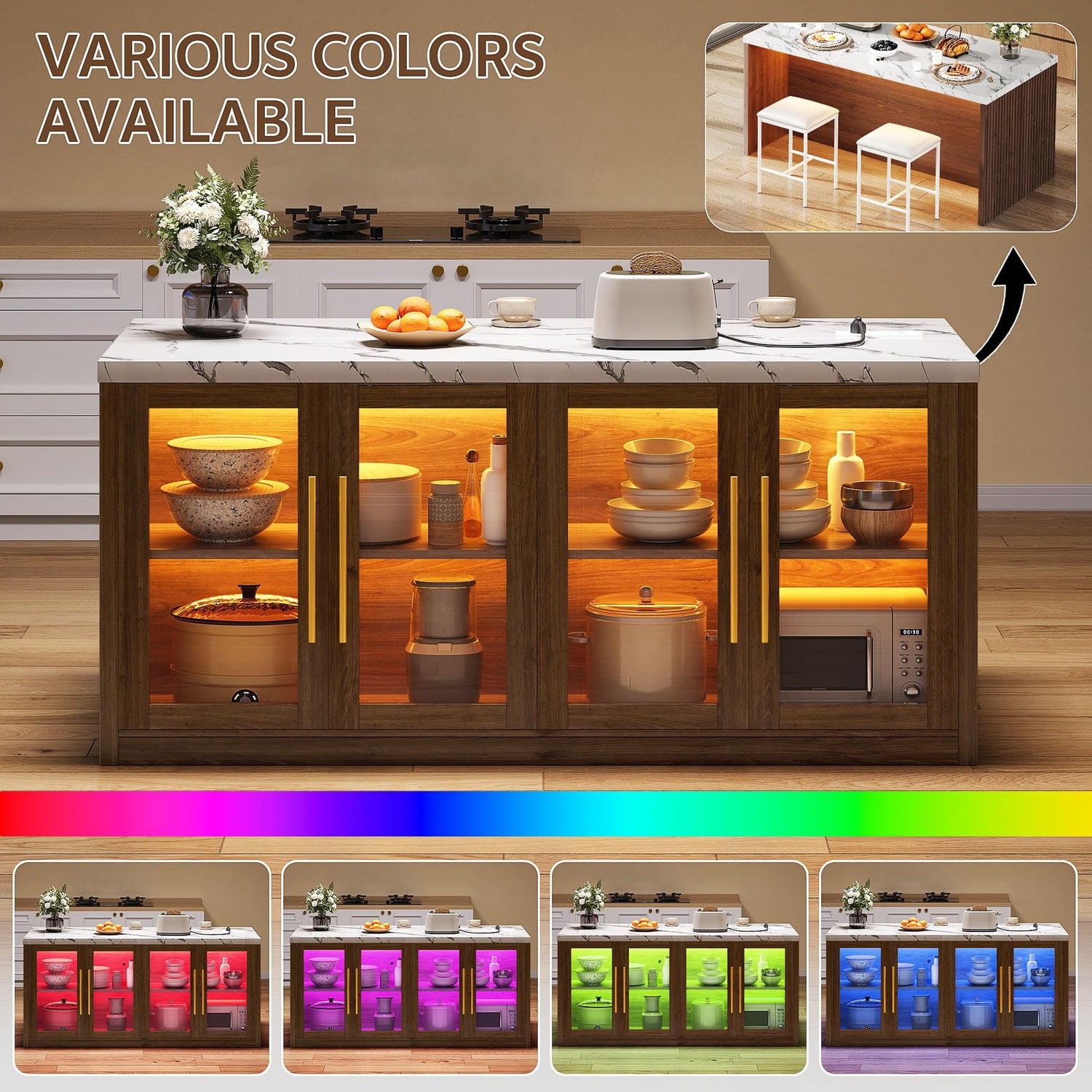 - RGB Illuminated Dining Experience: Elevate every meal with built-in customizable RGB lighting along the oversized tabletop! Create romantic ambiance for date nights, vibrant energy for family dinners, or focused task lighting for food preparation. This dual-function surface seamlessly transitions from practical island to atmospheric dining table, making every meal a special occasion.