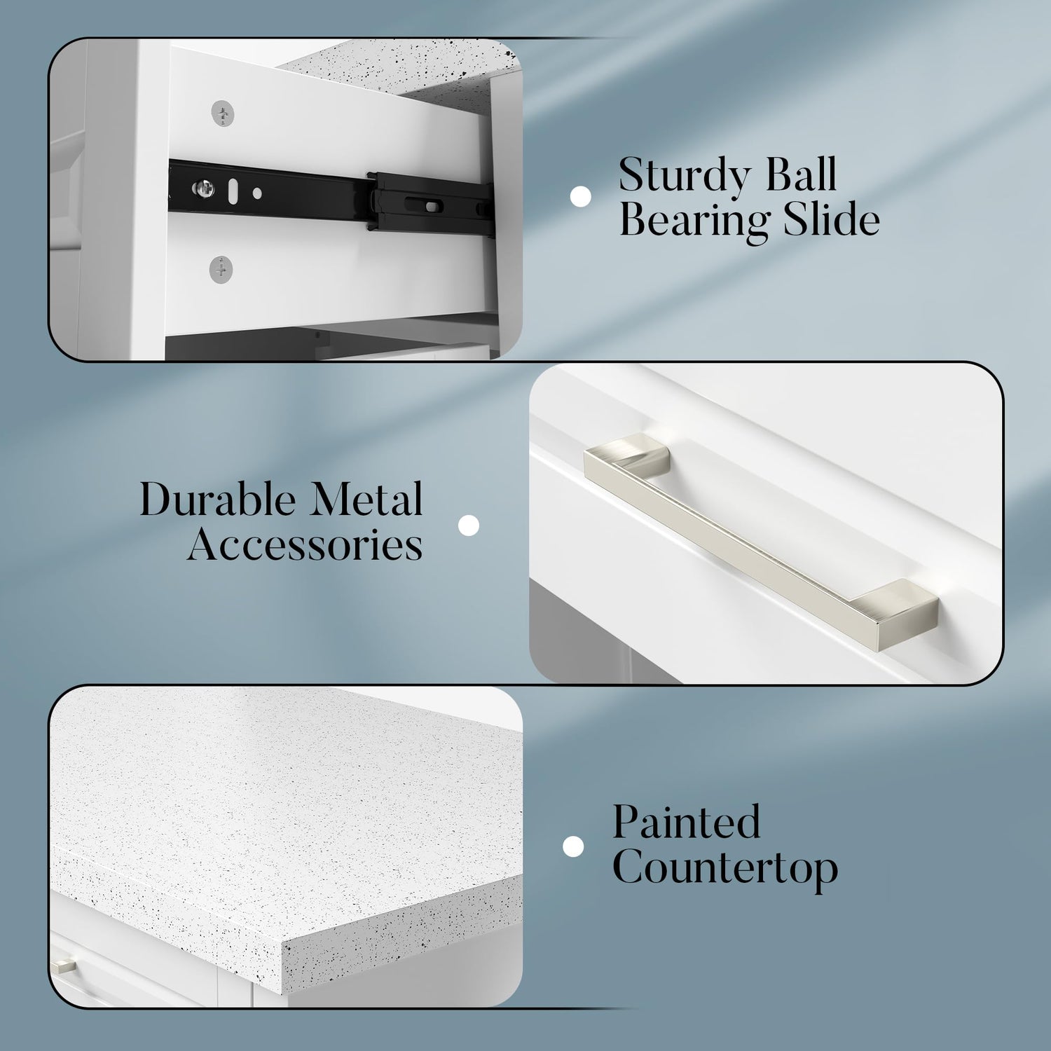 - [Durable Construction]: This white counter height bar table with storage is made of MDF, which is more sturdier and built for last. The drawers with metal sliders are smooth to use