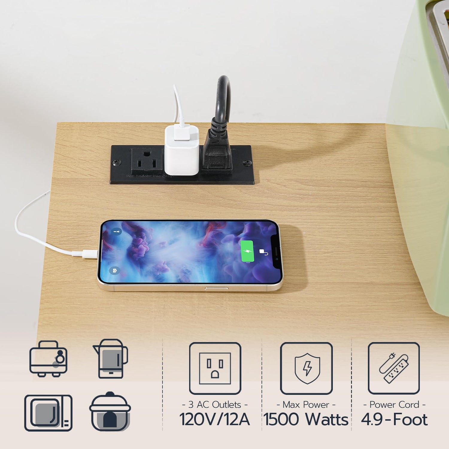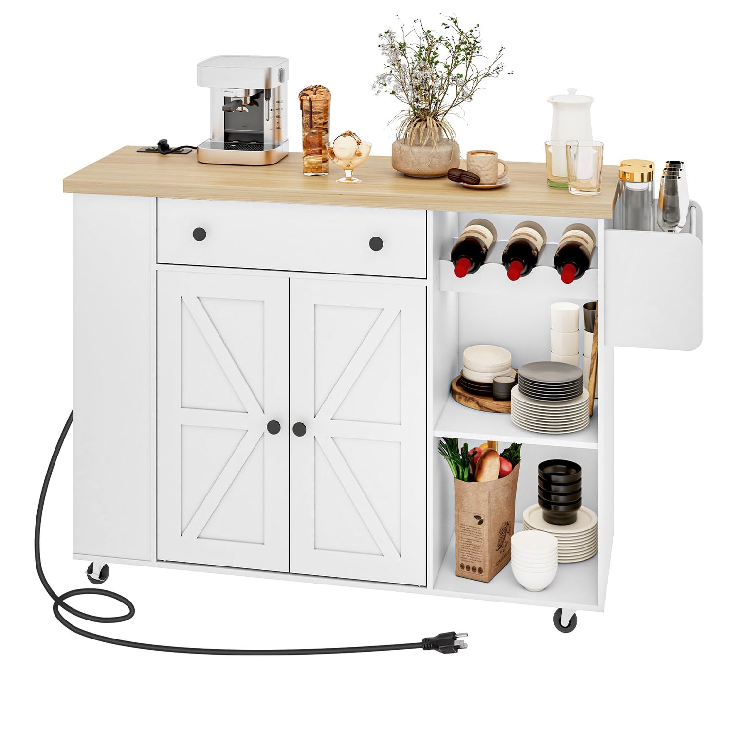 - Kitchen Island Cart with Charging Station: This kitchen island houses a convenient charging station with three standard outlets and a 6.5-foot power cord, allowing easy charging of coffee machines, toasters, and other small kitchen appliances