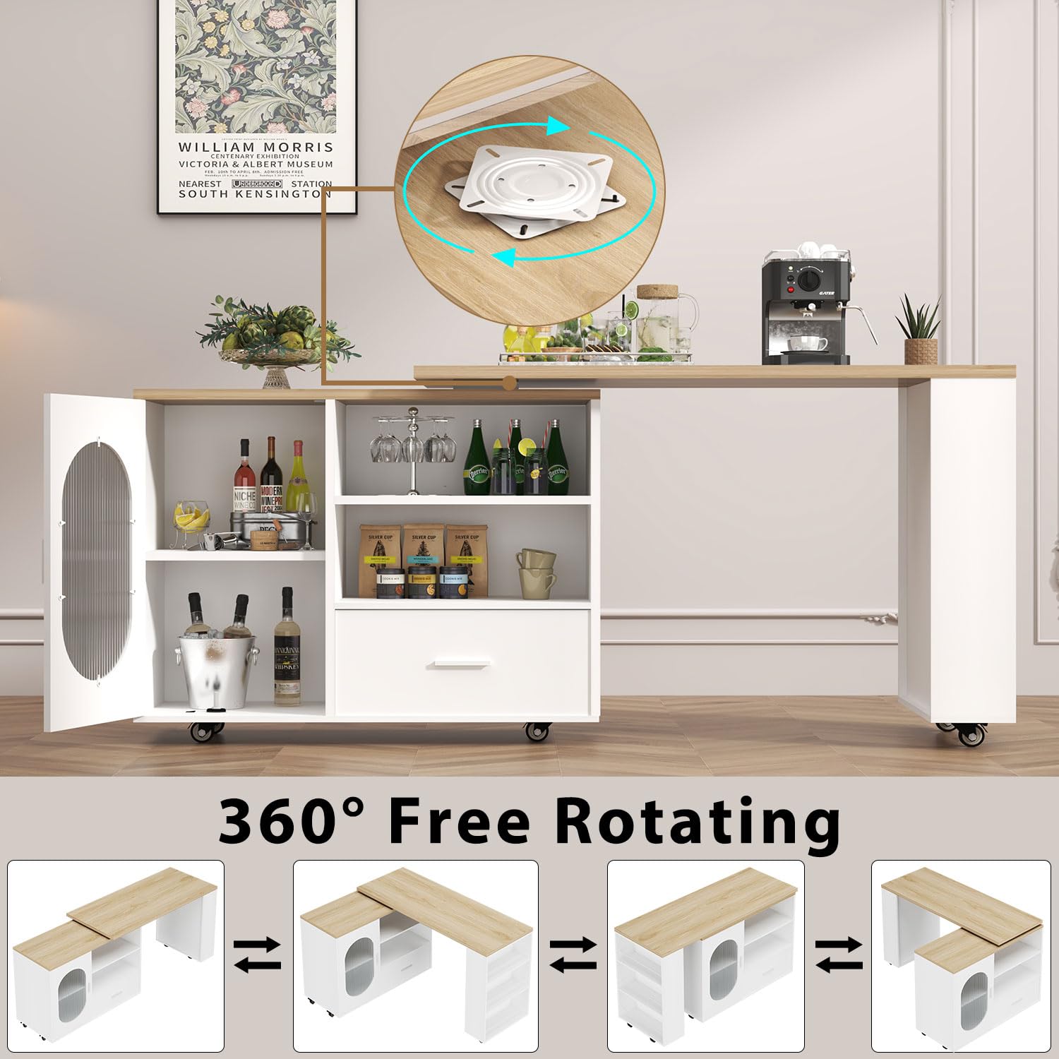 • 【360°Rotating Design for Flexible Layouts】: Rotate this kitchen island to any angle you need—perfectly adapt it to your kitchen layout for seamless space optimization. You can rotate the island table for kitchen to 180°as a dining table, 0°as a storage sideboard, or 90°as a work table/ bar table.
