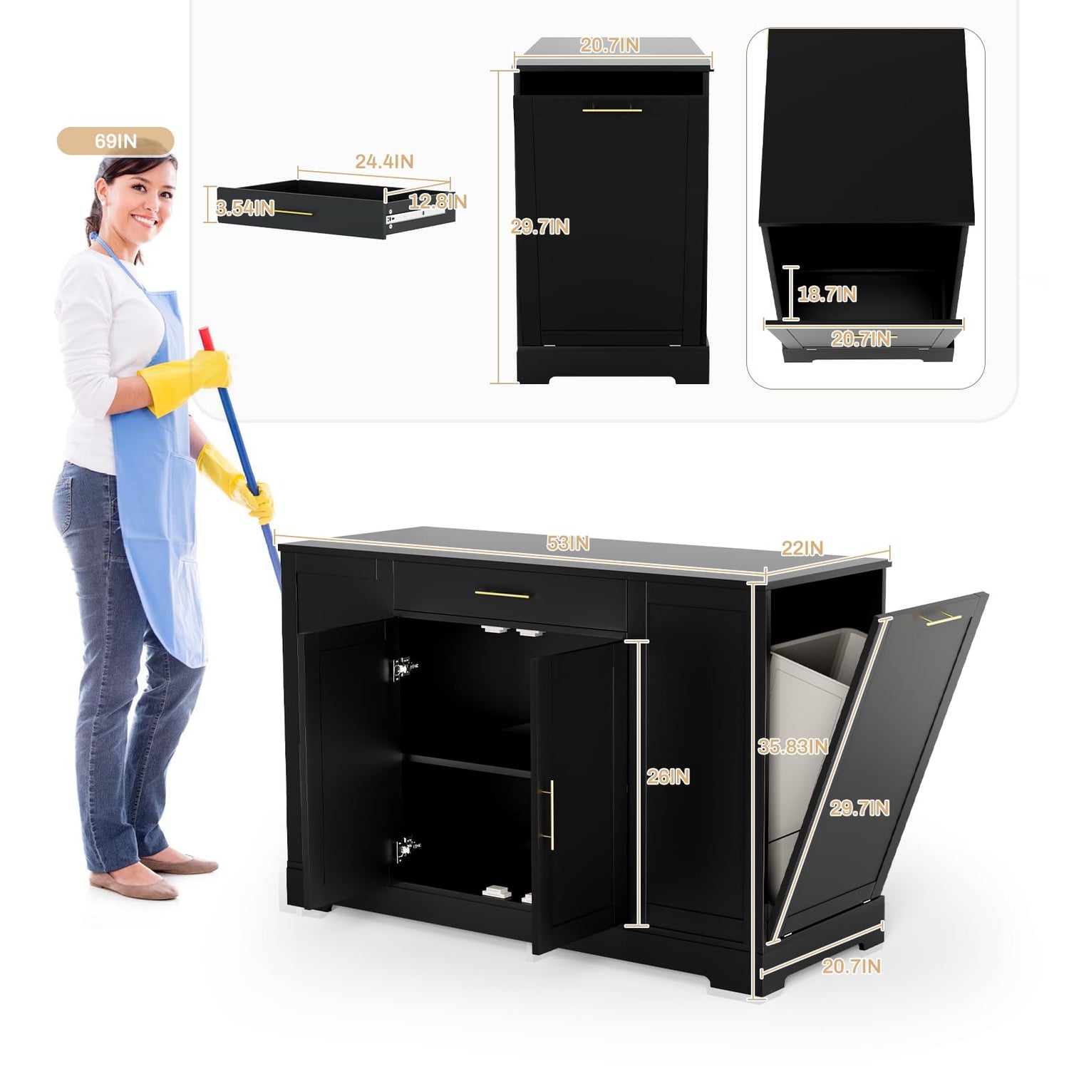- SIMPLICITY TRASH CAN CABINET: Side of kitchen cart can accommodate a 13-gallon trash can (not included), built-in design hides trash can to maintain its beauty. Kitchen cabinet desktop and cabinet body adopt a one-piece color design, which is stylish and simple, integrating with any decoration style environment
