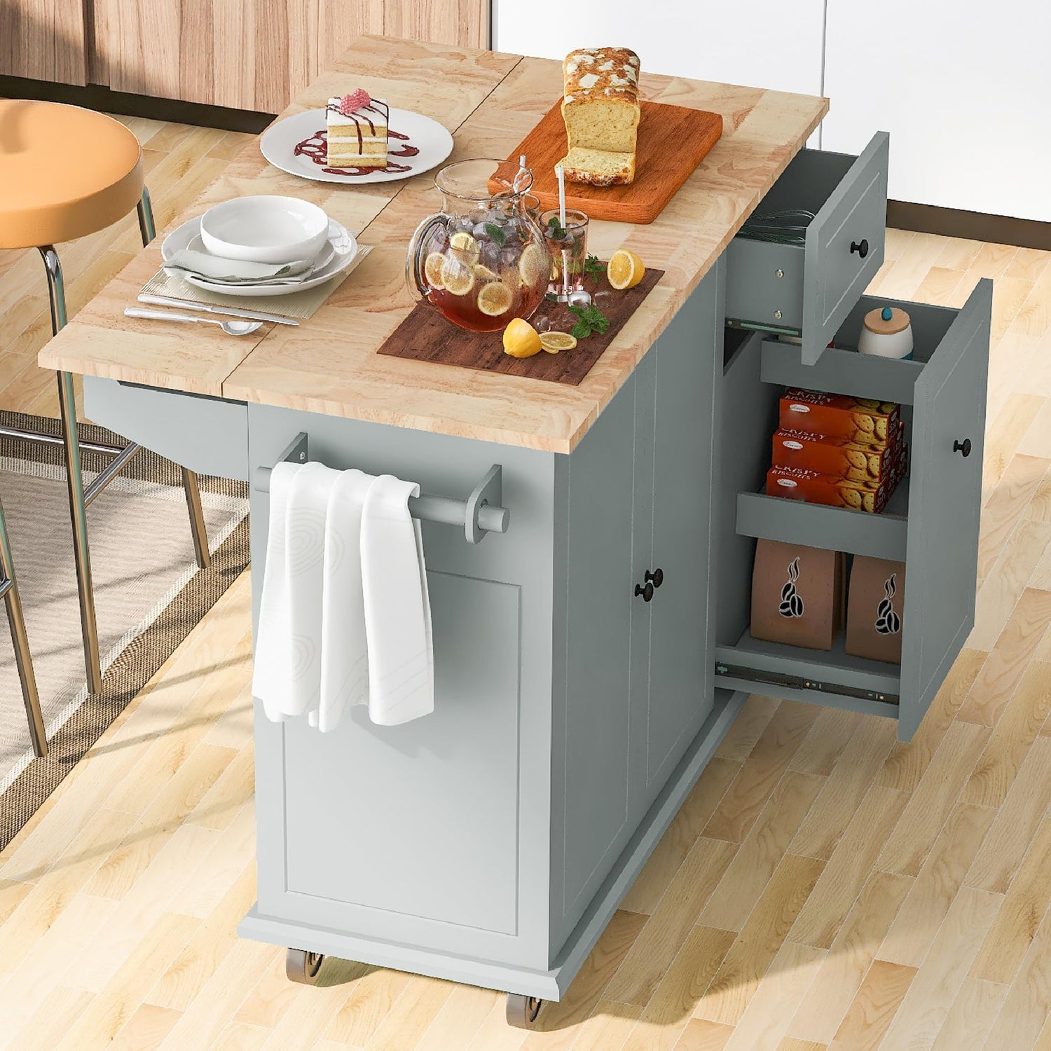 - Kitchen Island with Drop Leaf: For tiny kitchens or homes with limited space, the drop-leaf design is undoubtedly an excellent solution. With a folding kitchen island countertop can provides additional workspace and storage when you needed and can also be seamlessly converted into a bar cart or mobile coffee center.