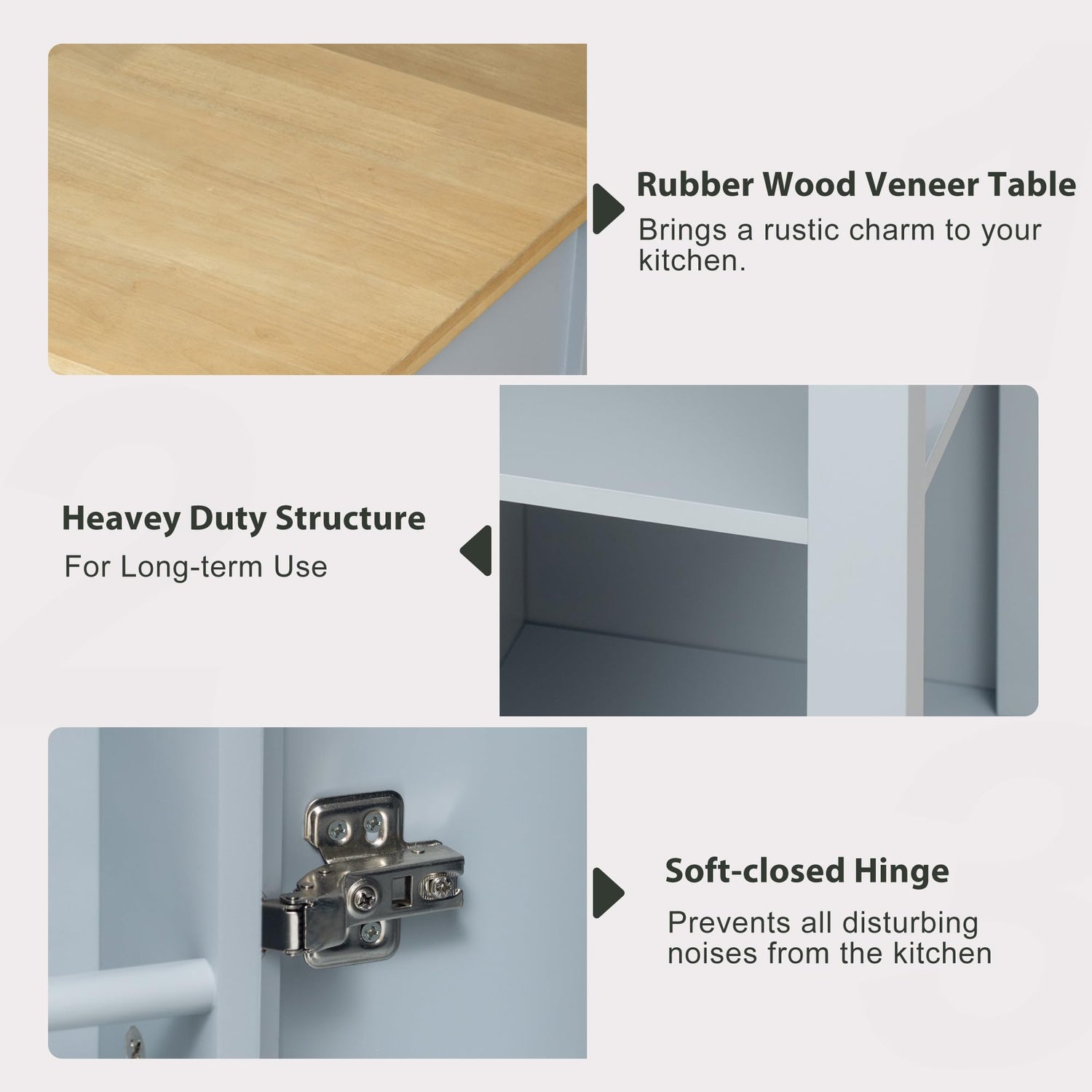• [Sturdy and Durable] Crafted from premium P2 engineered wood (MDF) with a stunning rubber wood veneer top and blue paint, this island ensures long-lasting durability, full-body waterproofing, and easy maintenance. With a remarkable weight capacity of up to 400lbs and a strong cabinet base, it offers reliability and stability.